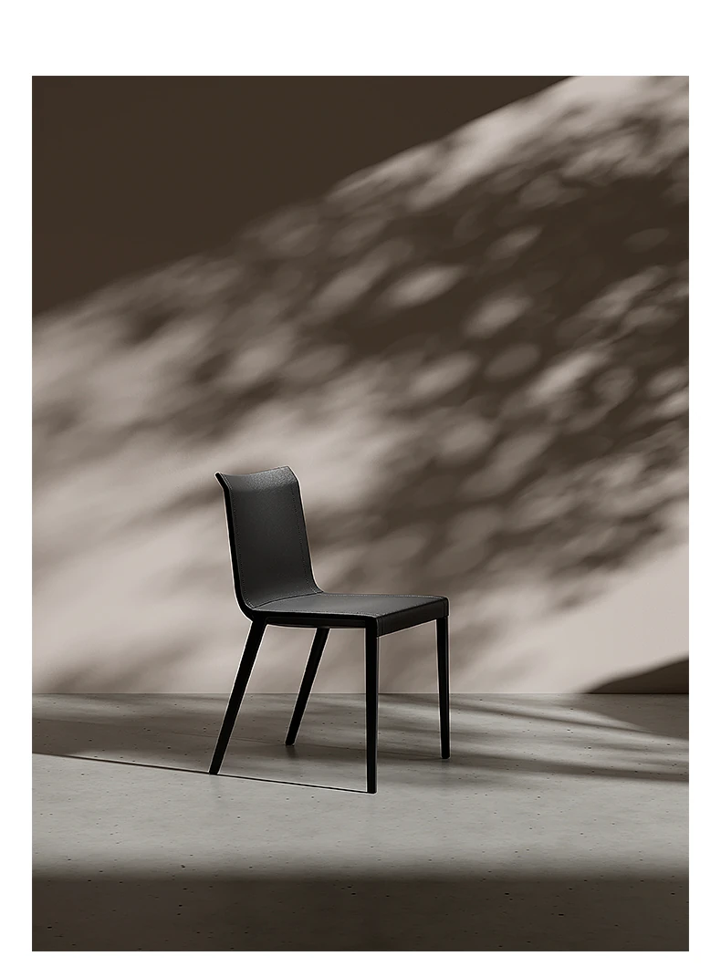 イタリア製ラグジュアリーサドルレザーのミニマルデザイン食卓椅子 - 輸入高級本革、モダンで洗練されたリビングルームに最適なデザイナーチェア。上質な素材で極上の座り心地を実現!