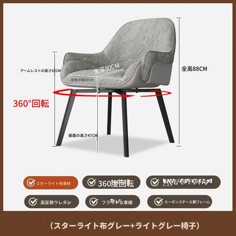 イタリアンミニマルデザイン360度回転ダイニングチェア、ラグジュアリーな家庭用ダイニングテーブルチェア、高級感溢れるデスクチェア、2025年新作!スタイリッシュな空間を演出します。