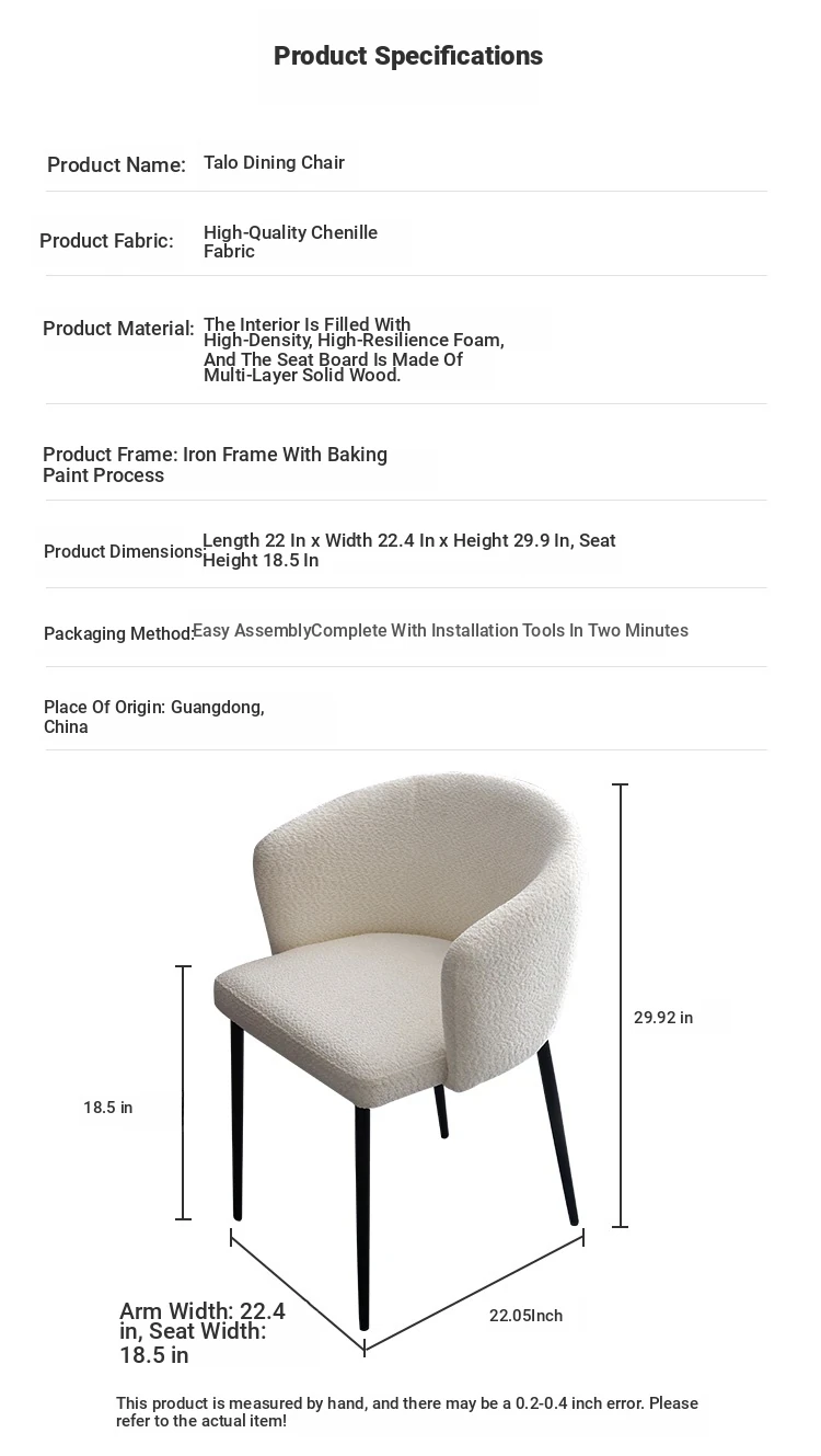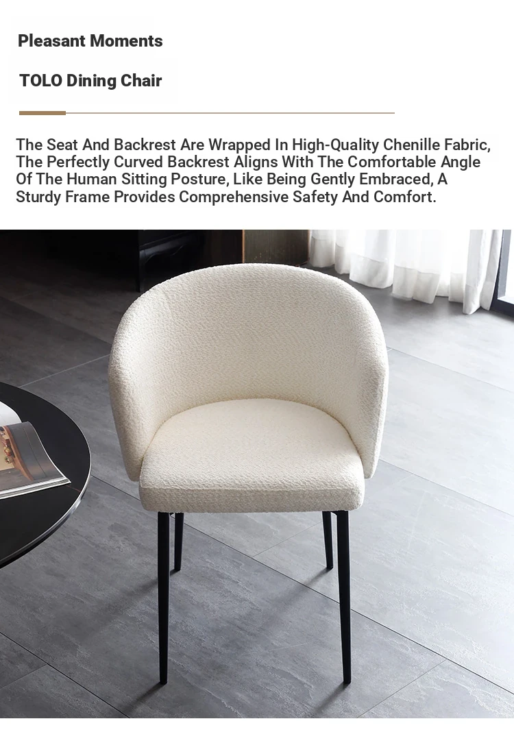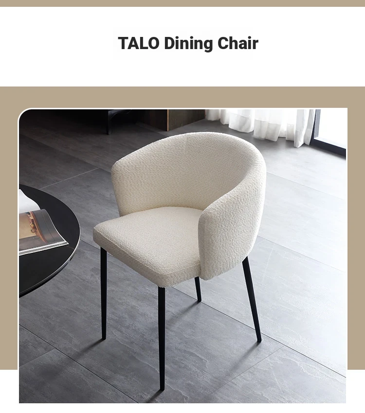 Italian Minimalist Dining Chair - Cream Talo Fabric Chair, Luxurious Coffee Chair for Home, Perfect for Dining Tables and Reading Nooks with Comfortable Backrest.