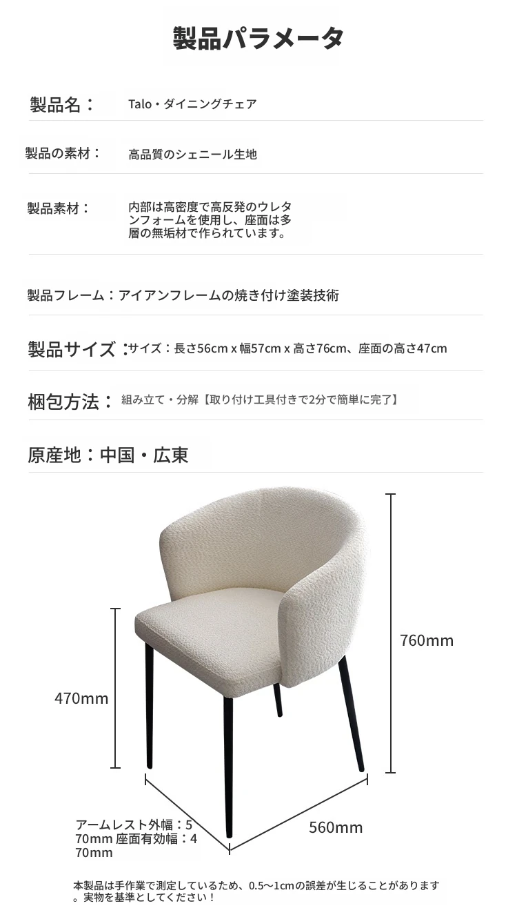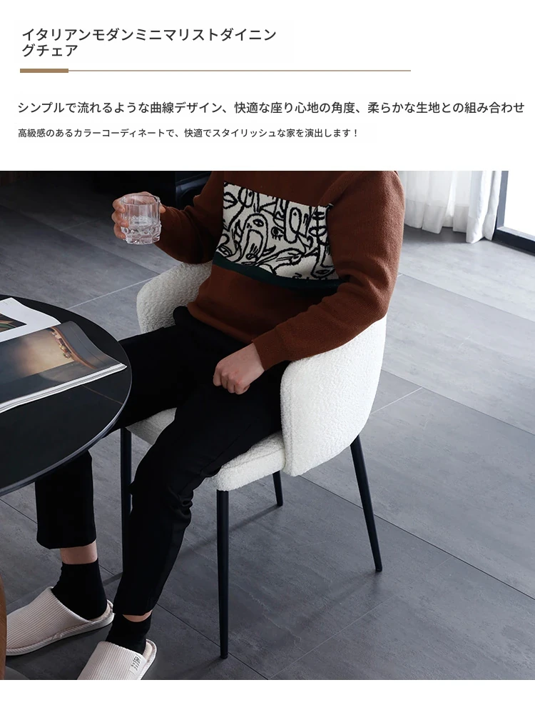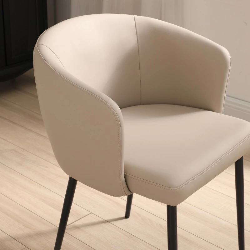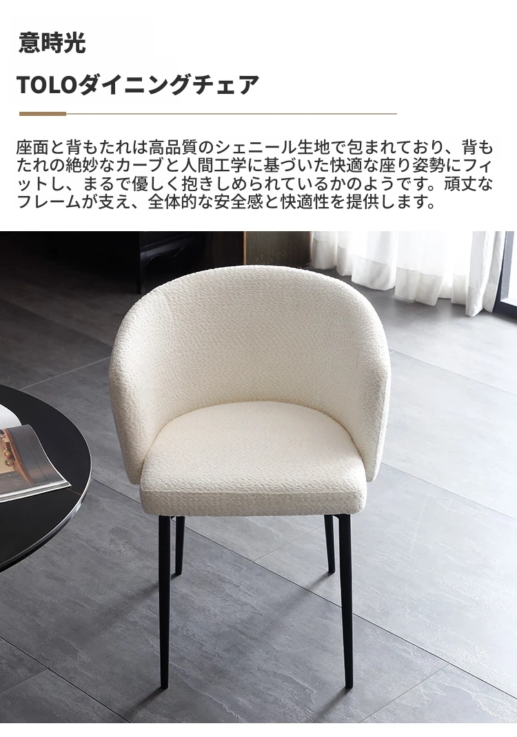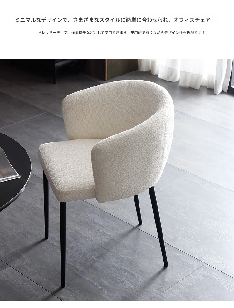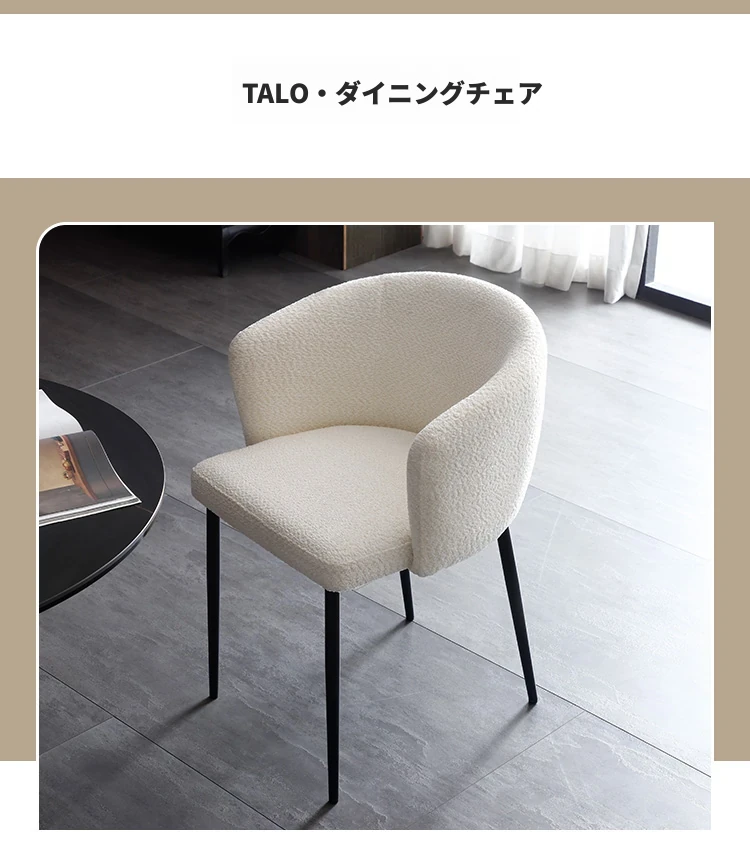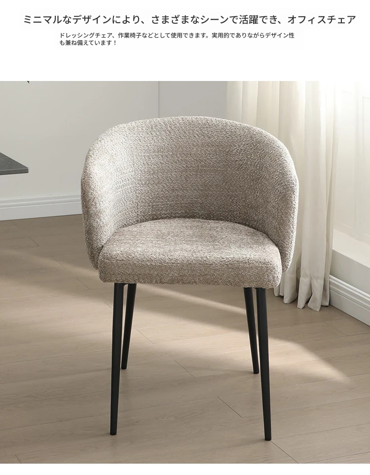 イタリアンミニマリズムのクリーム風タローチェア - 布製で軽やかなデザインのダイニングチェア、カフェチェア、書斎用チェアとしても最適。上質な空間を演出する、あなたのライフスタイルにぴったりの一脚です。