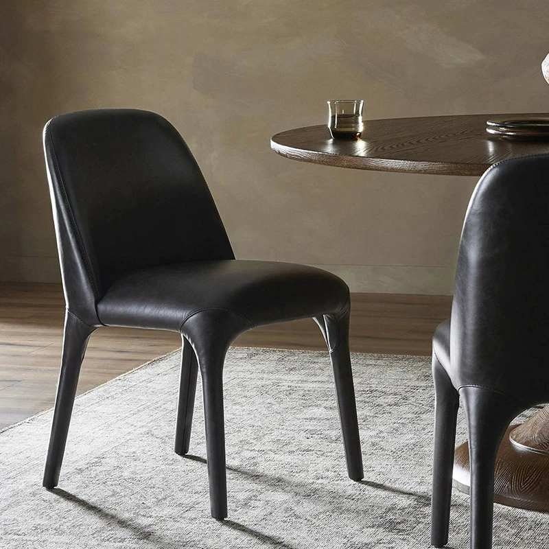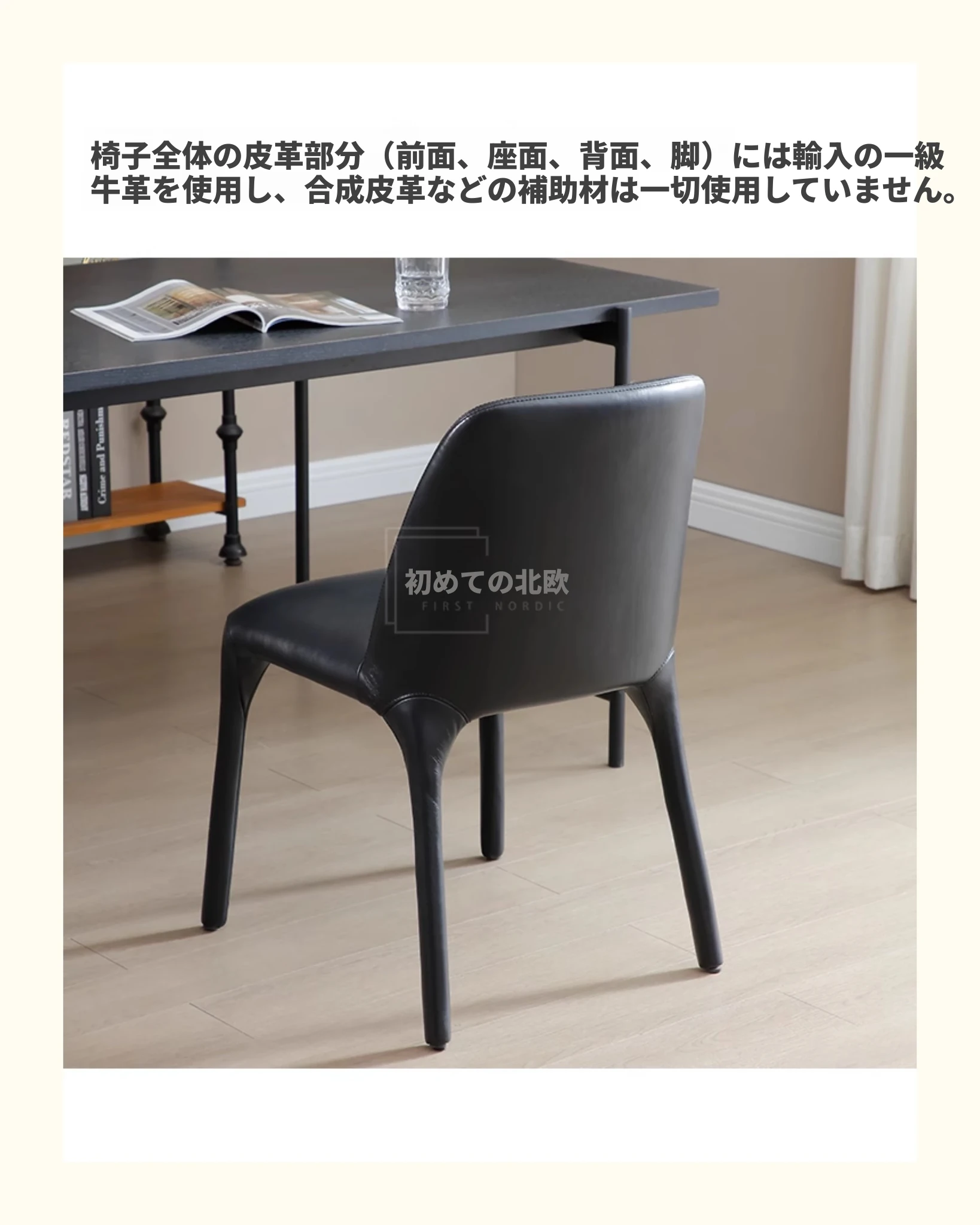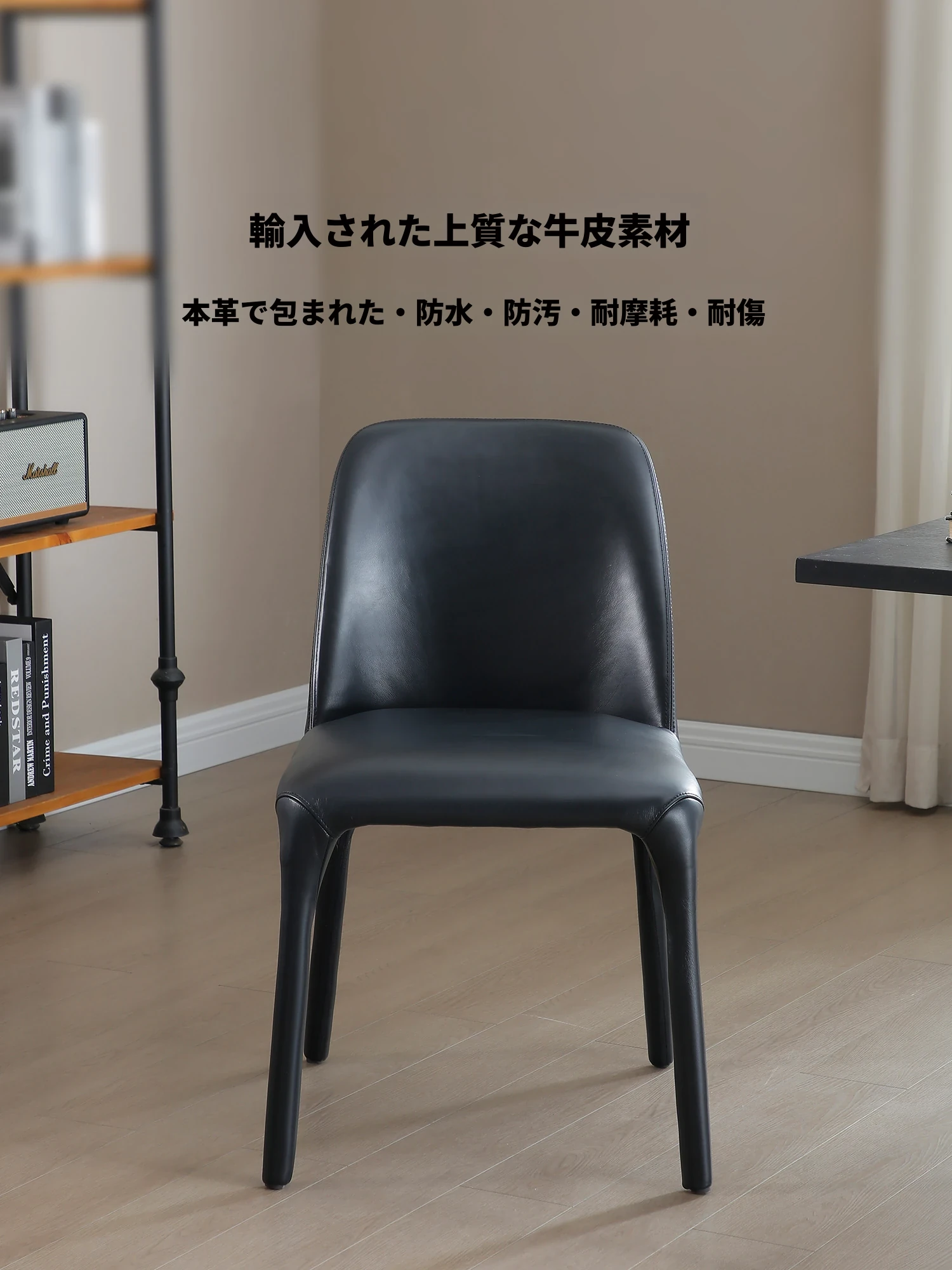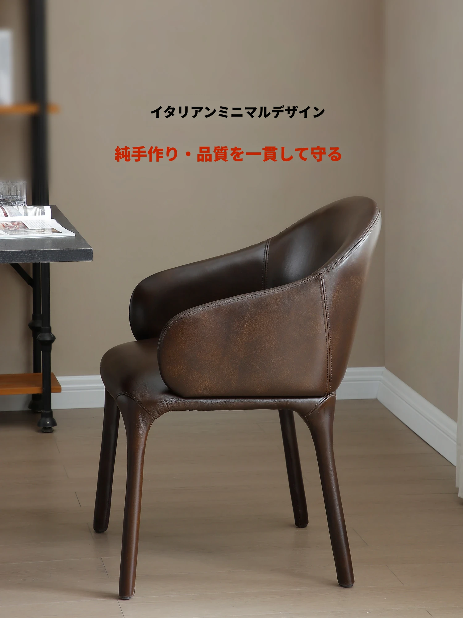 イタリアンミニマルデザイン 本革製ダイニングチェア 家庭用 本牛革使用 2025年新作 デザイナーの侘び寂び風レザー椅子で、シンプルで洗練された空間を演出。