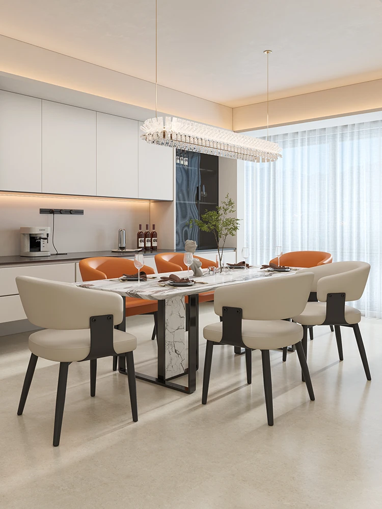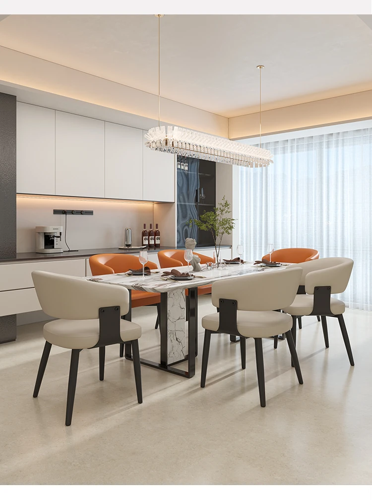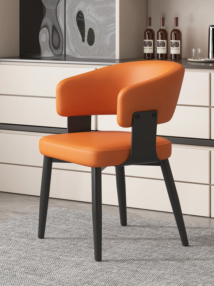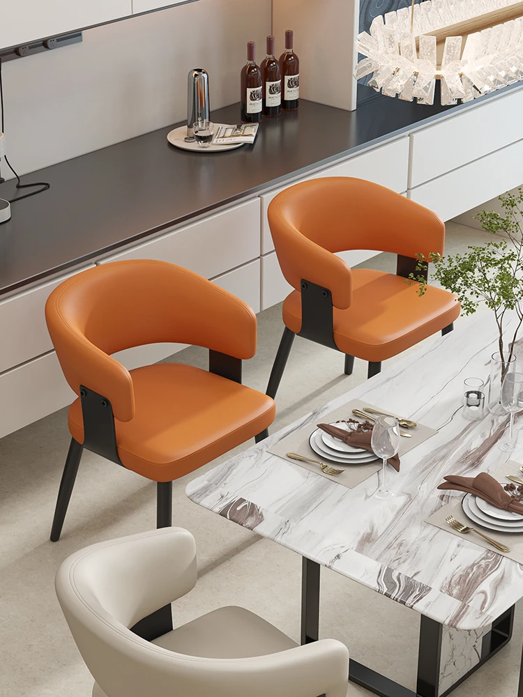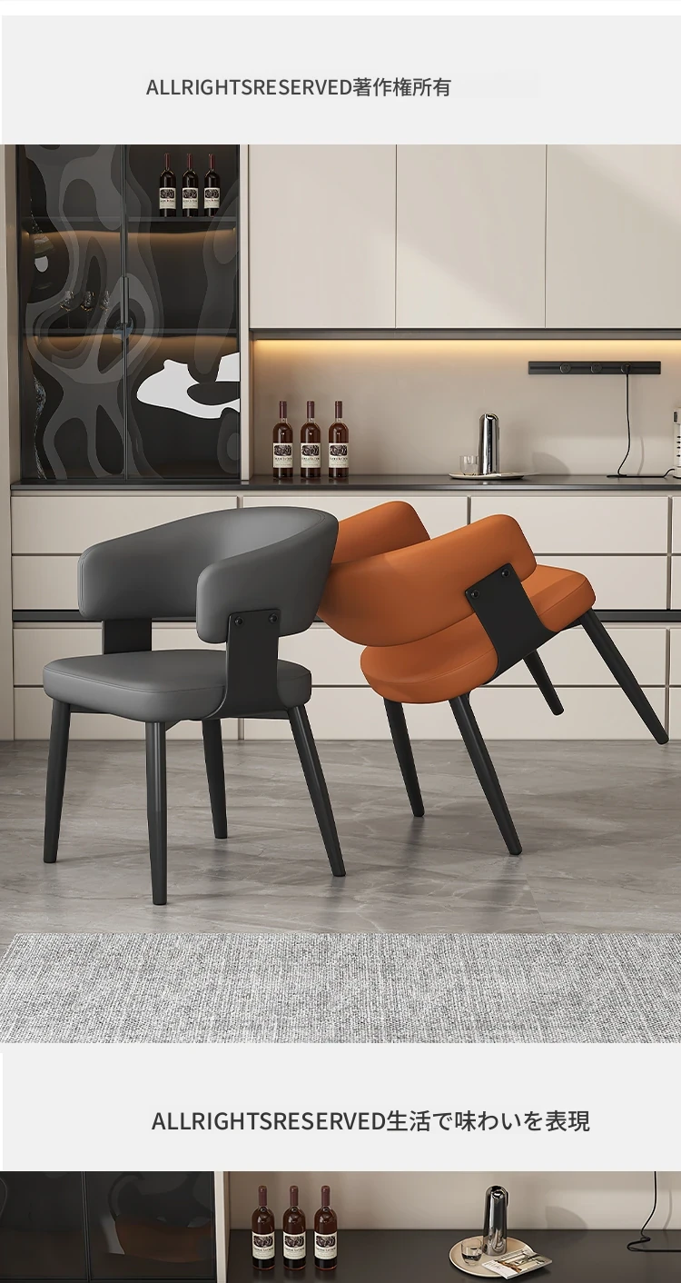イタリアンミニマルレザー dining chair - 高級感溢れるモダンデザイン、家庭やレストランに最適!背もたれ付きで快適な座り心地。ホテルやダイニングテーブルにもぴったりなソフトパッキングチェア。