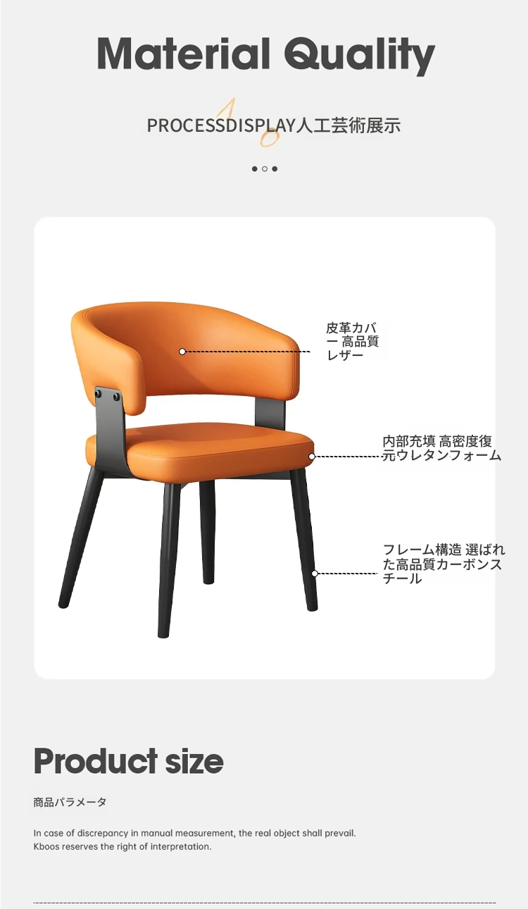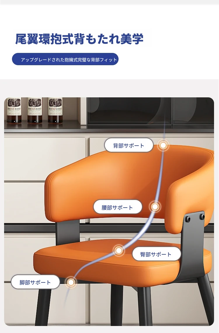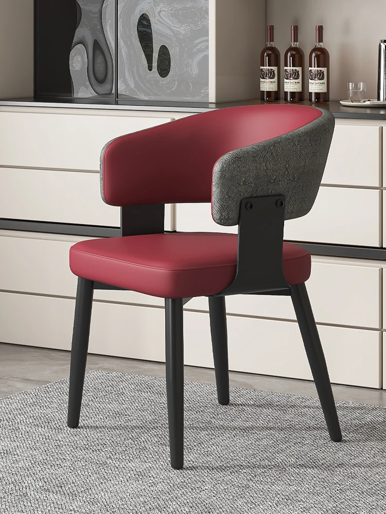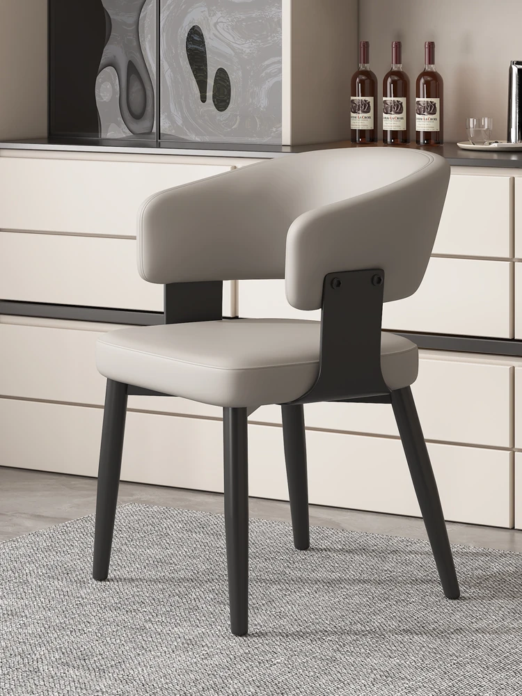 イタリアンミニマルレザー dining chair - 高級感溢れるモダンデザイン、家庭やレストランに最適!背もたれ付きで快適な座り心地。ホテルやダイニングテーブルにもぴったりなソフトパッキングチェア。