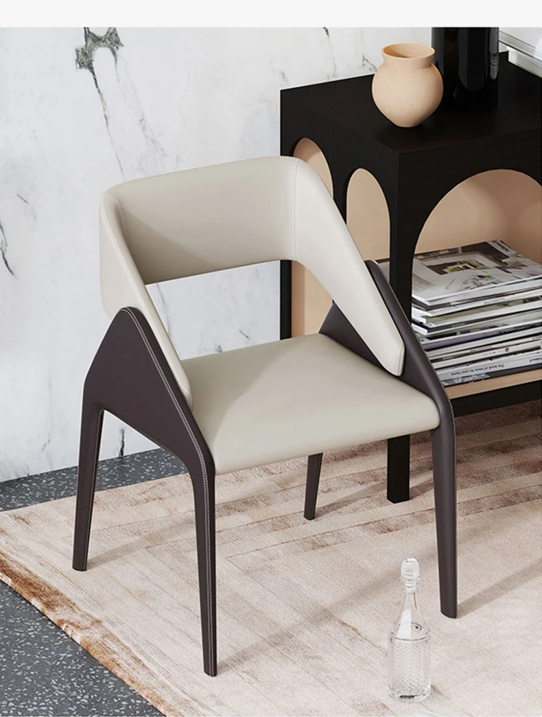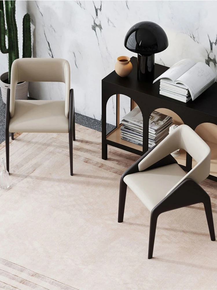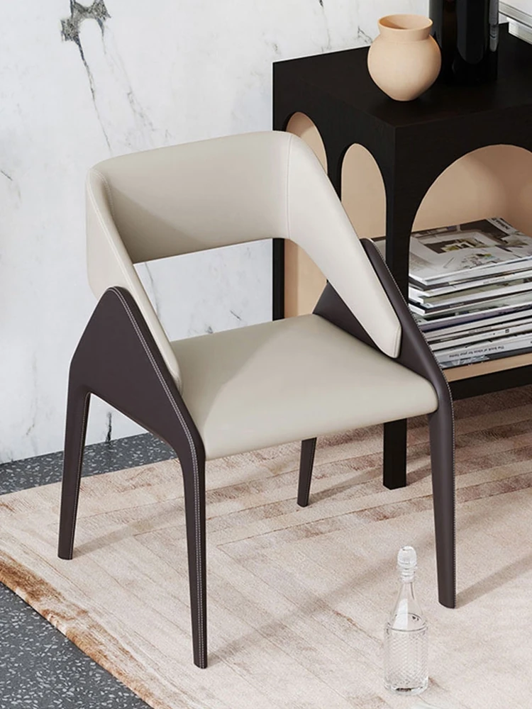イタリアン北欧スタイルのサドルレザー製ダイニングチェア - モダンでシンプルなデザイン、快適な背もたれ付き、上質な仕上げのデスクスツール。あなたの空間を洗練された雰囲気に演出します。