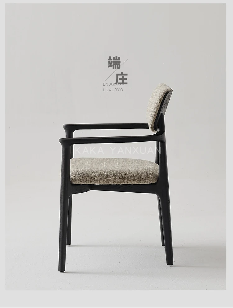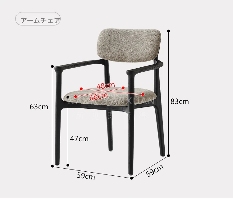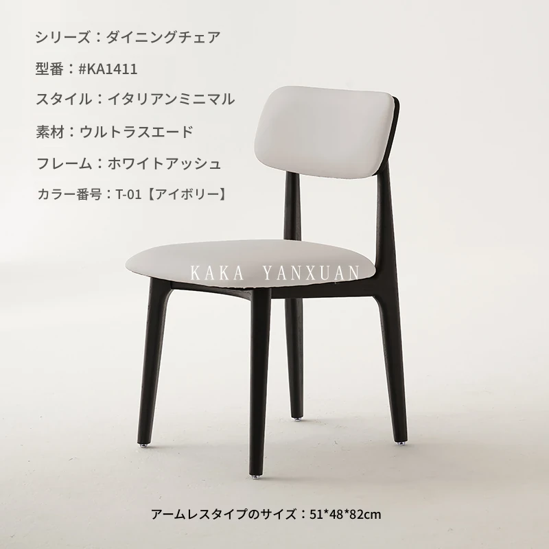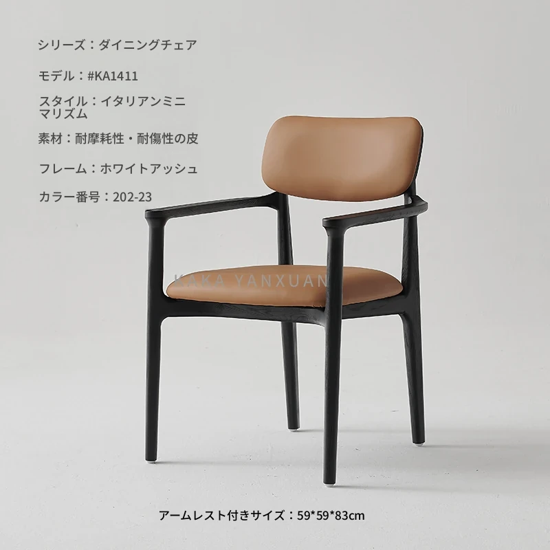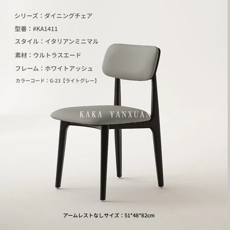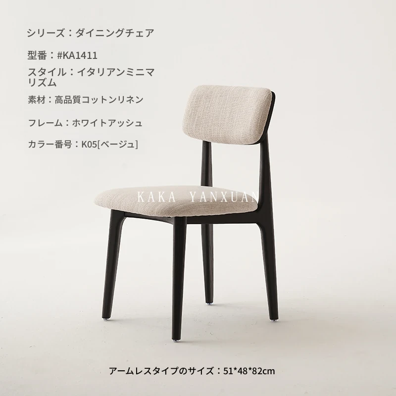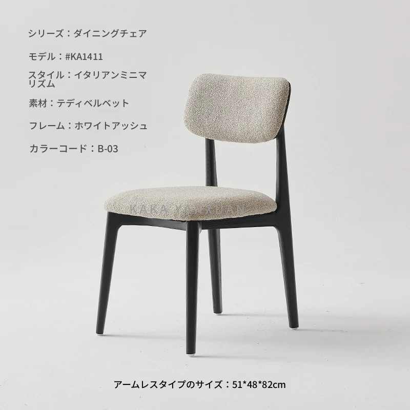 高級感あふれるイタリアンスタイルの布張りダイニングチェア。ホワイトアッシュのアームとシンプルなデザインが特徴の実木製デスクチェア。おしゃれな空間を演出し、居心地の良いひとときを提供します。