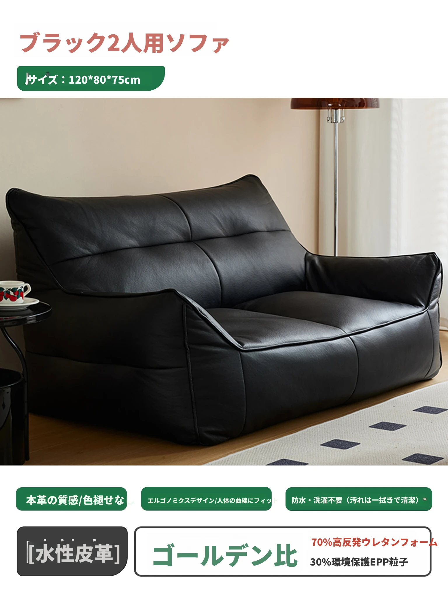 ☆アップグレードスポンジタイプ【水性レザー-ダークカラー】2人用-座り心地が柔らかめ