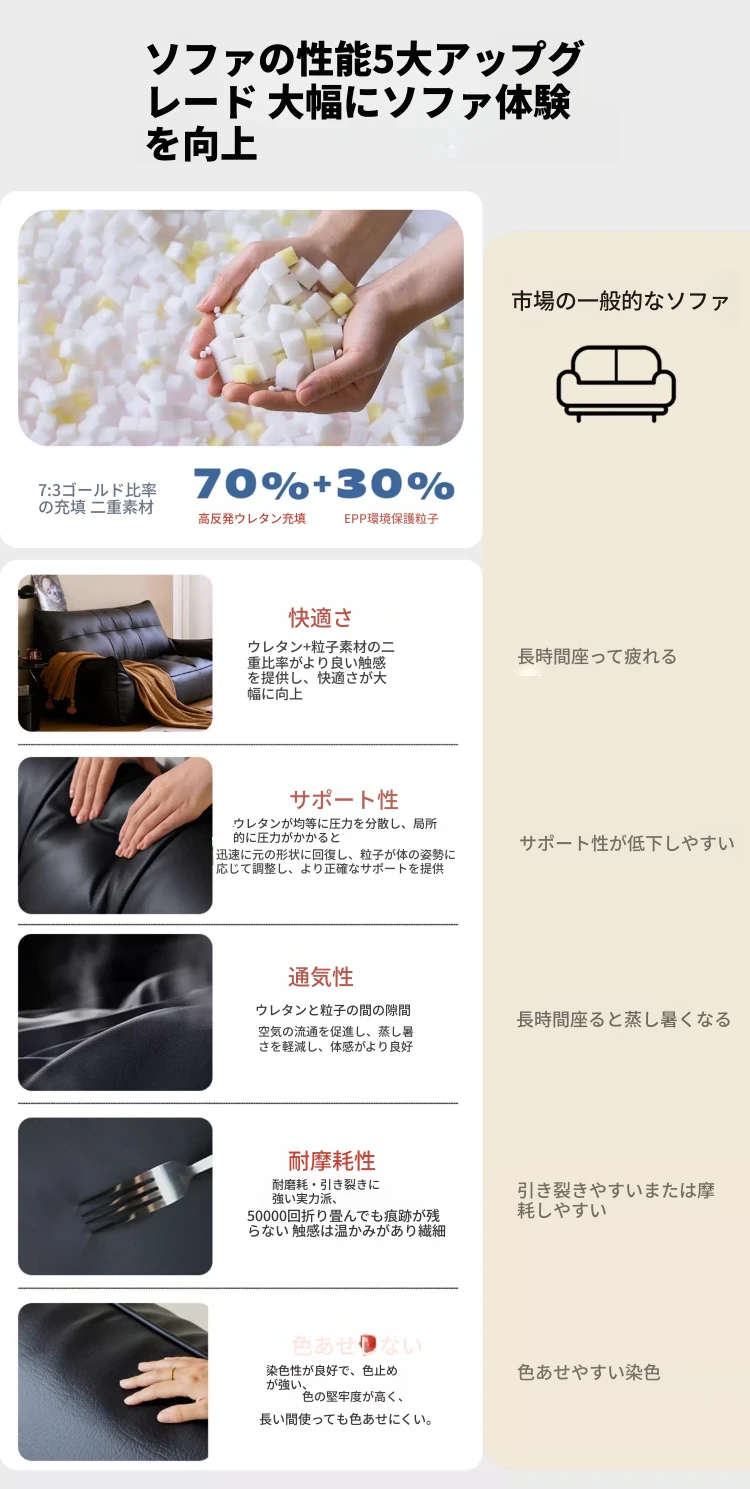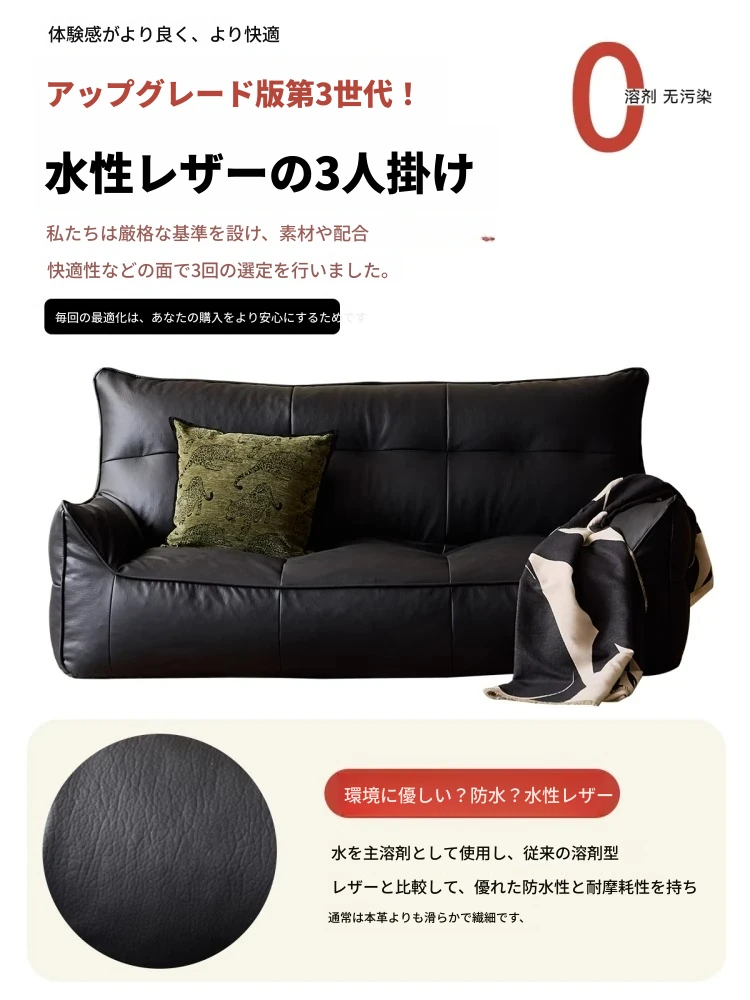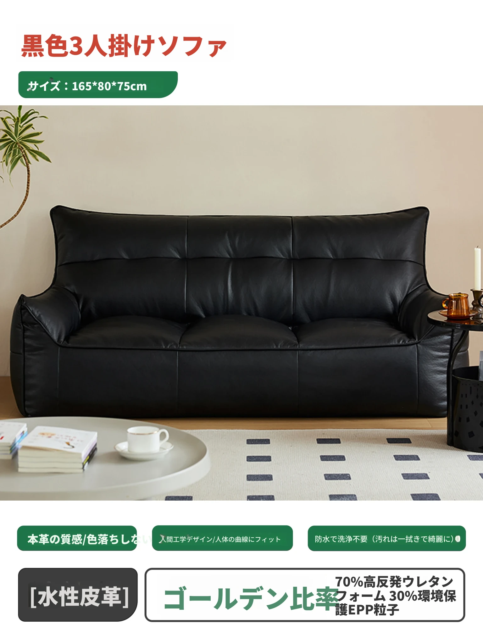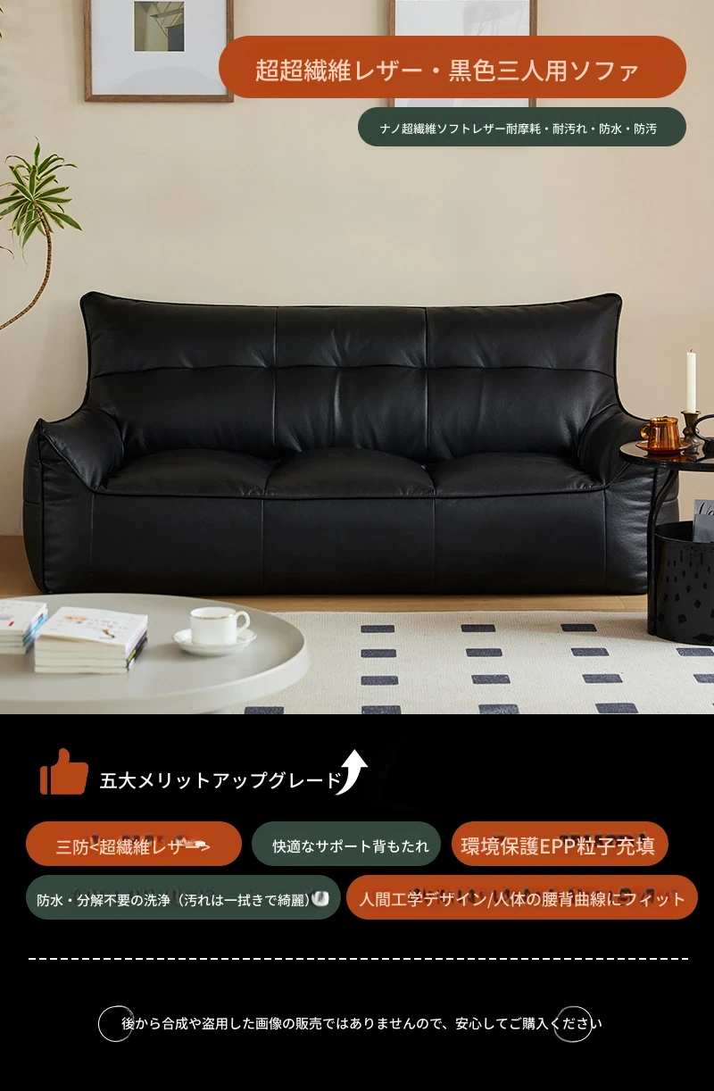 粒子タイプ【三防超合成皮革-ブラック】3人用-座り心地が硬め