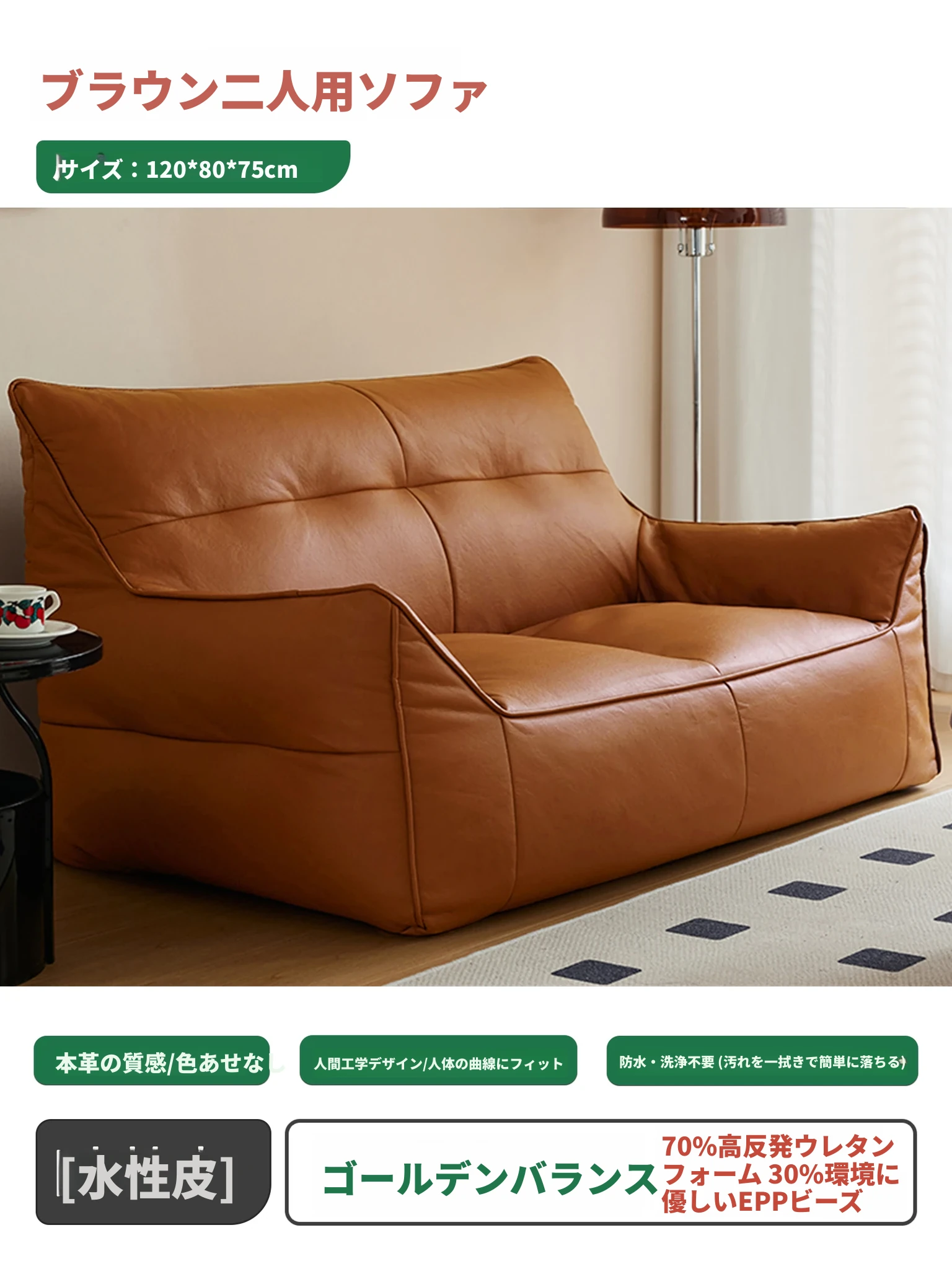 ☆アップグレードスポンジタイプ【水性レザー-ブラウン】2人用-座り心地が柔らかめ