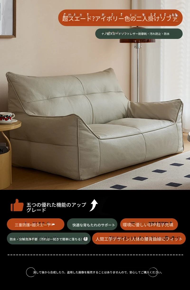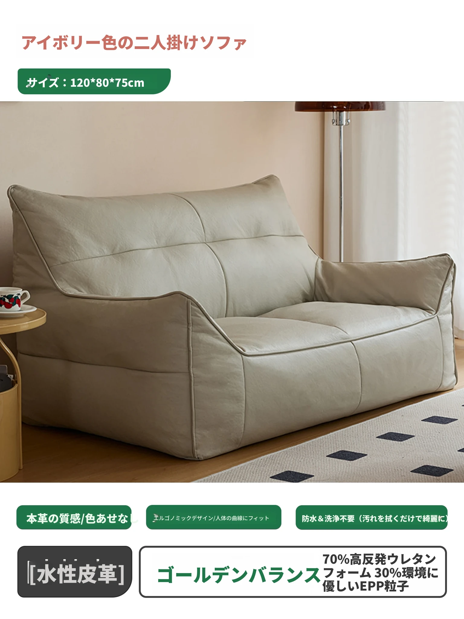 粒子タイプ【三防超合成皮革-アイボリー】2人用-座り心地が硬め