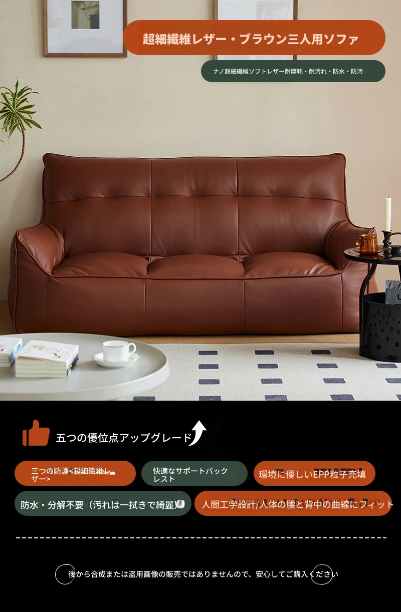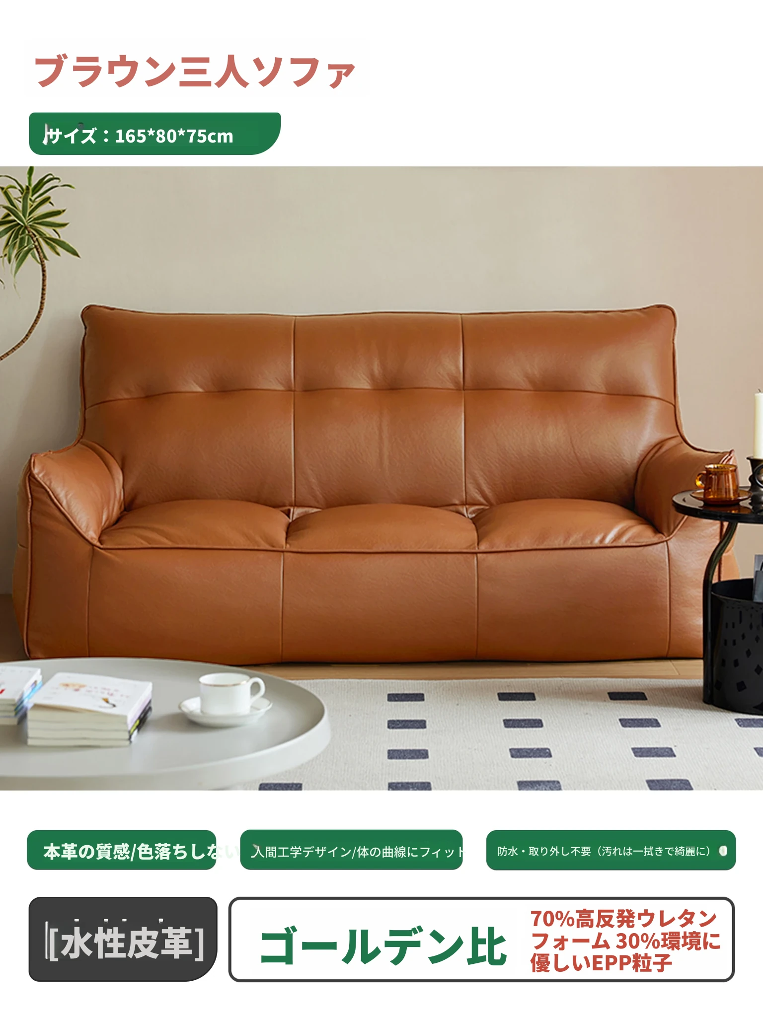粒子タイプ【三防超合成皮革-ブラウン】3人用-座り心地が硬め