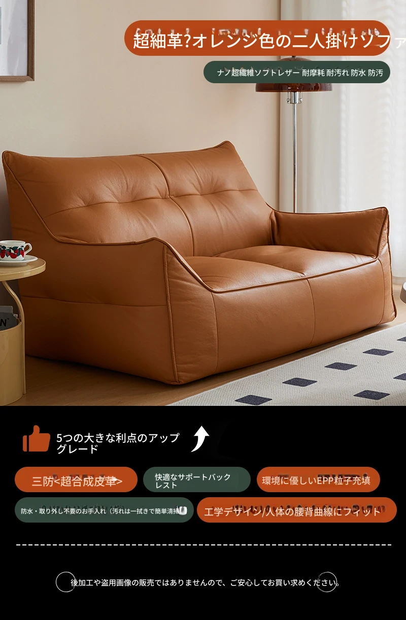 粒子タイプ【三防超合成皮革-オレンジ】2人用-座り心地が硬め