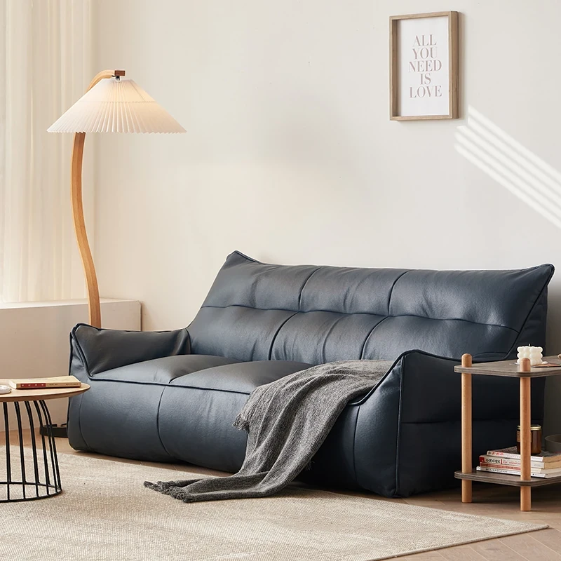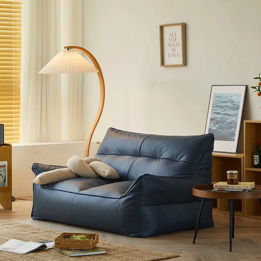 粒子タイプ【三防超合成皮革-ダークブルー】2人用-座り心地が硬め