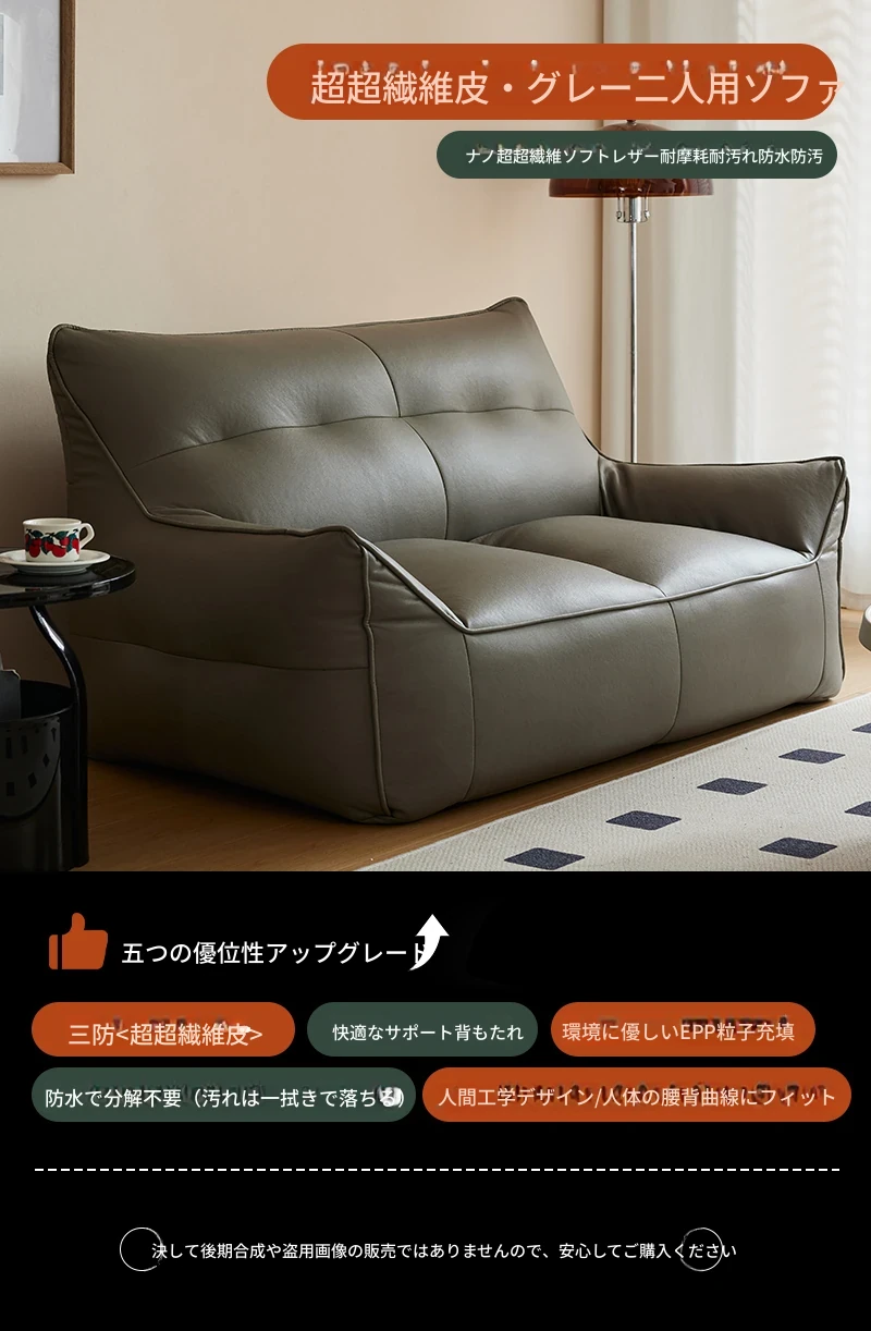 粒子タイプ【三防超合成皮革-グレー】2人用-座り心地が硬め