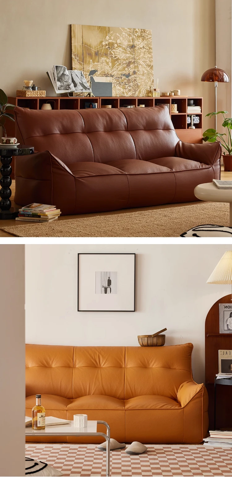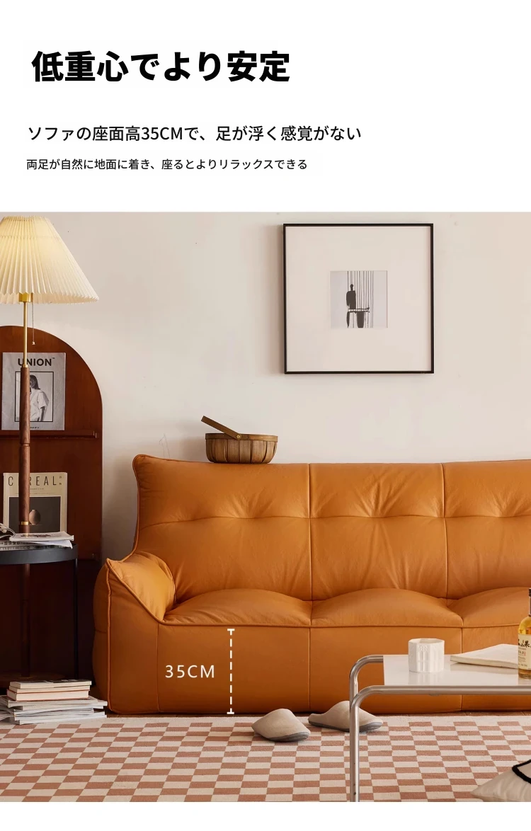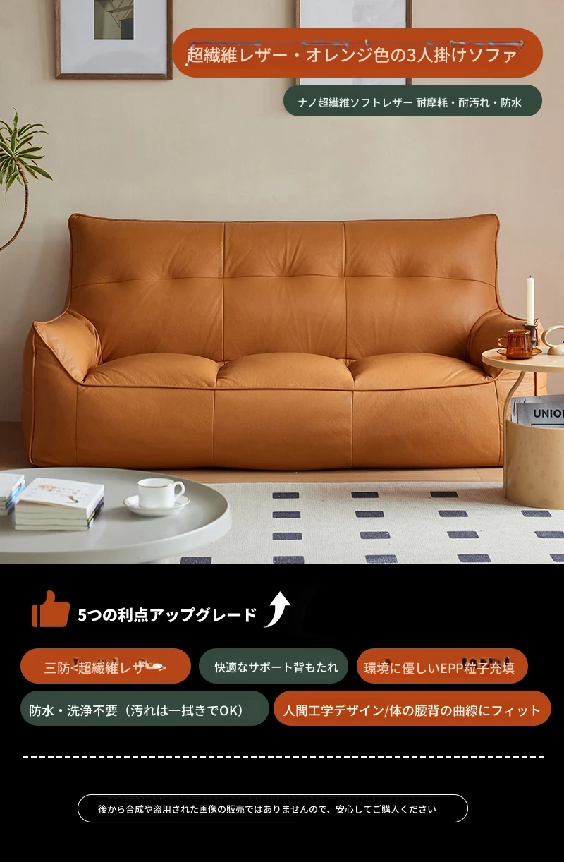 粒子タイプ【三防超合成皮革-オレンジ】3人用-座り心地が硬め