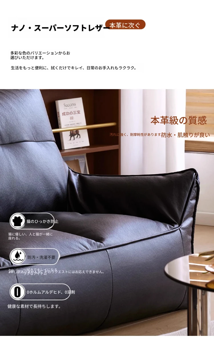 粒子タイプ【三防超合成皮革-ブラック】2人用-座り心地が硬め