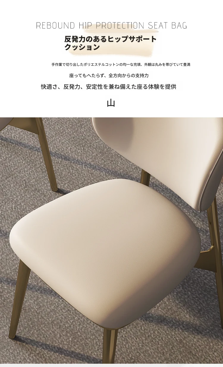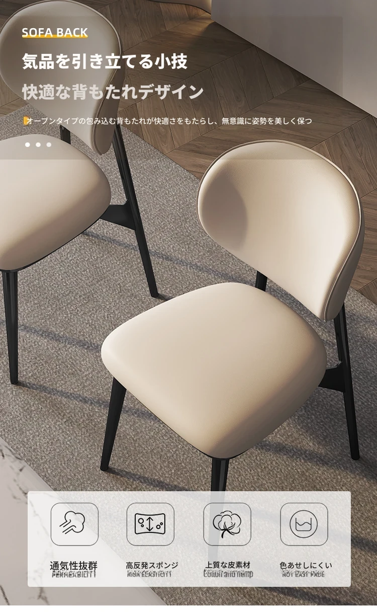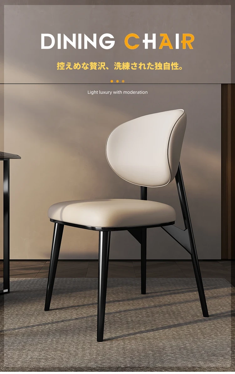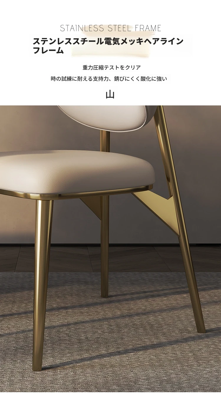 高級感溢れる軽奢ダイニングチェア - 本革トップグレード牛皮使用、コンパクトな小型住宅に最適!背もたれ付きで快適な座り心地、スタイリッシュなステンレススチールフレームで現代的なシンプルさを演出。