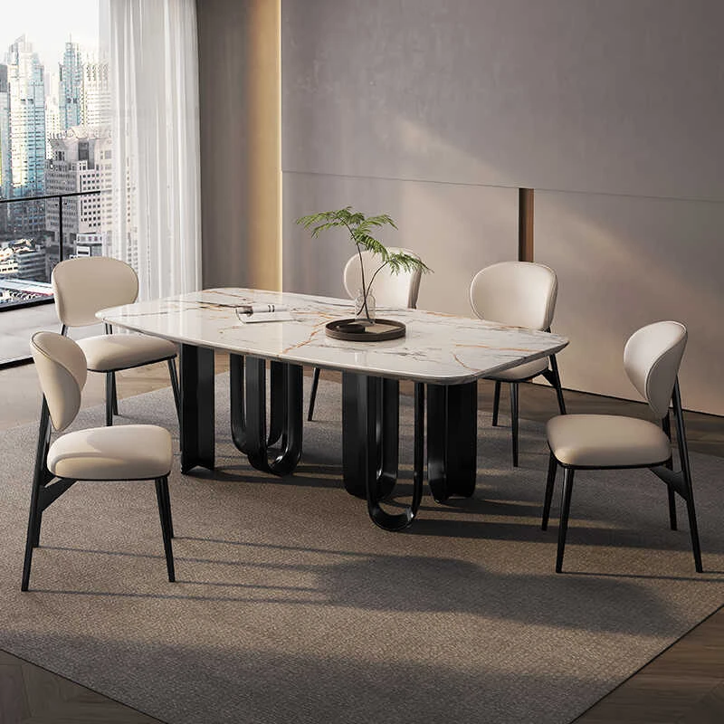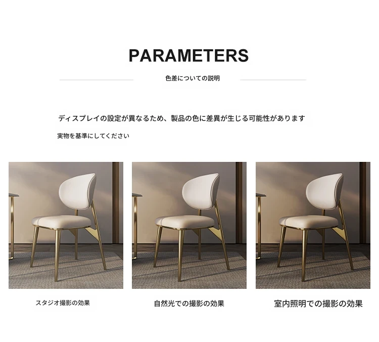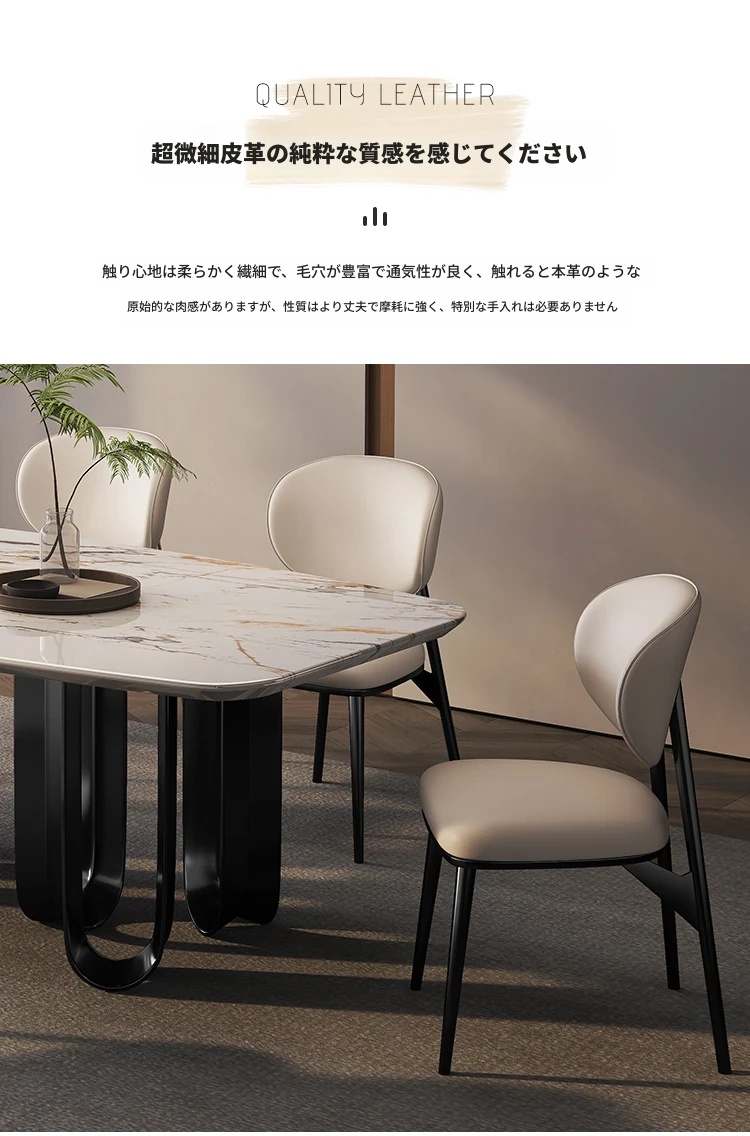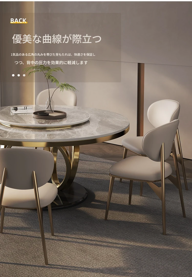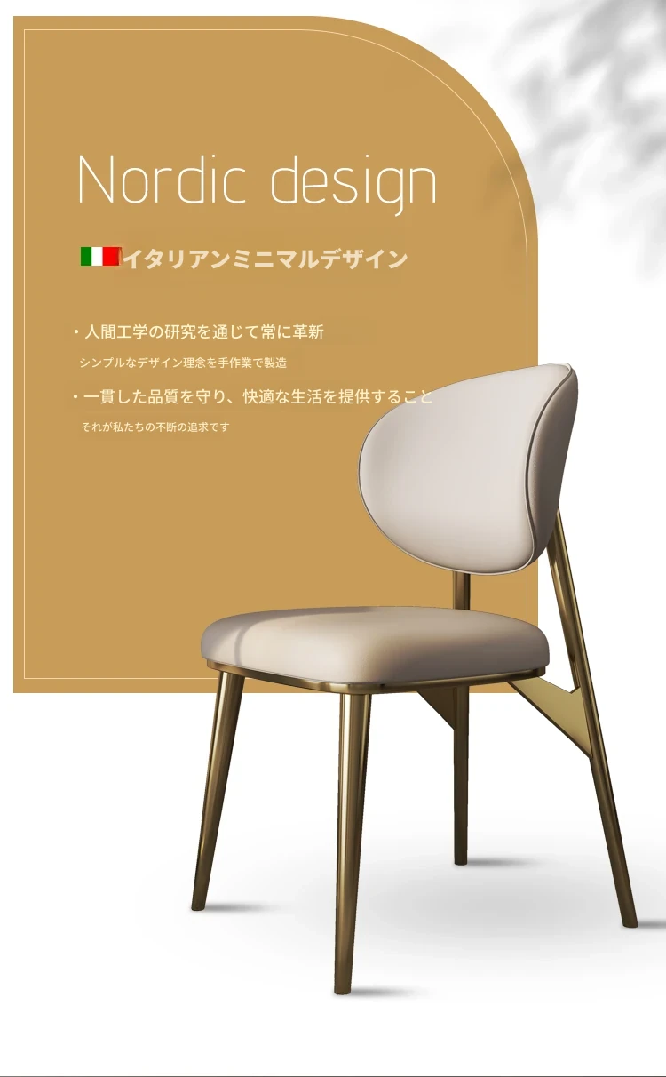 高級感溢れる軽奢ダイニングチェア - 本革トップグレード牛皮使用、コンパクトな小型住宅に最適!背もたれ付きで快適な座り心地、スタイリッシュなステンレススチールフレームで現代的なシンプルさを演出。