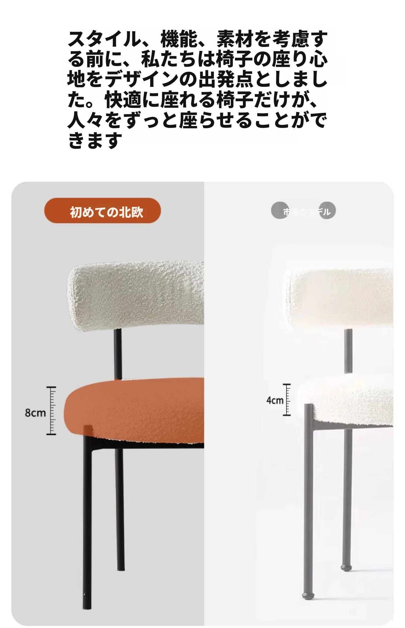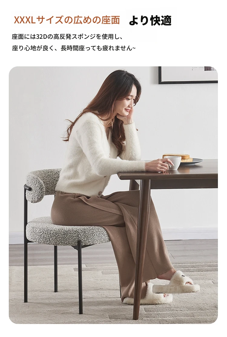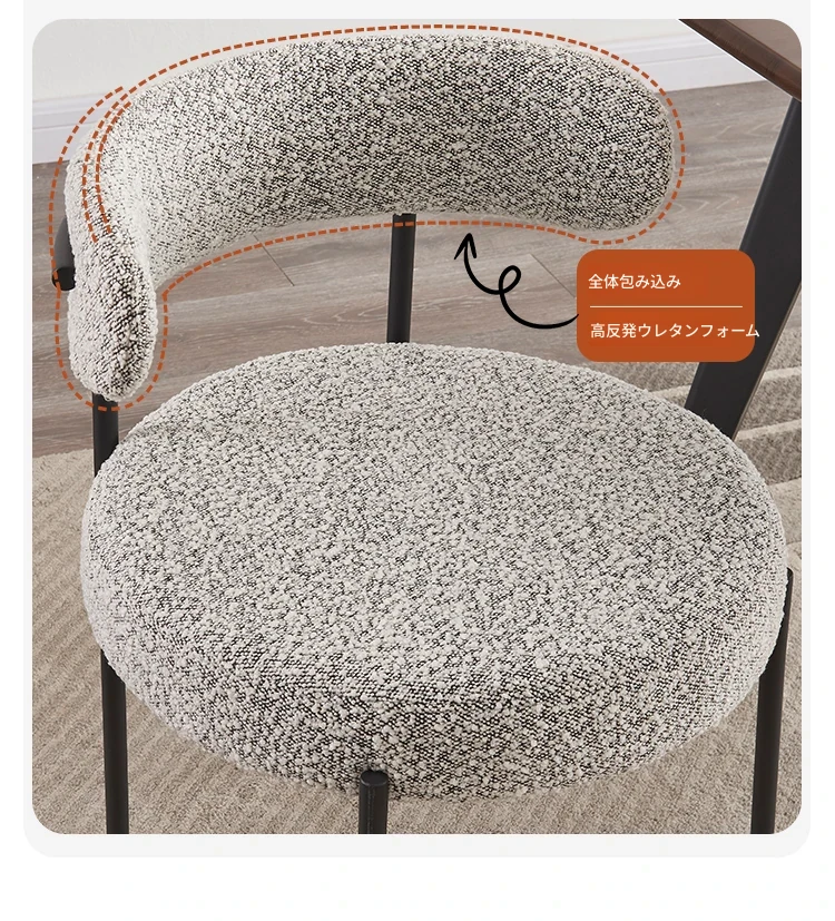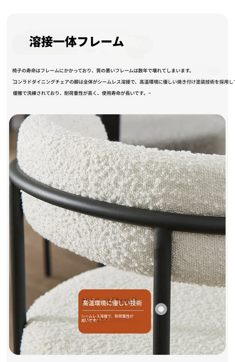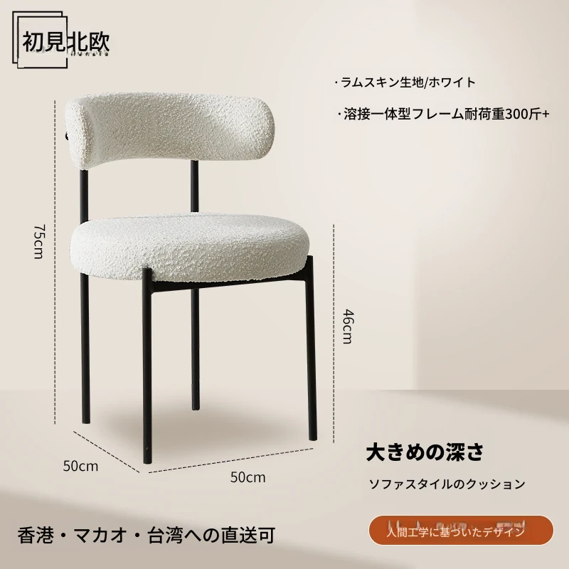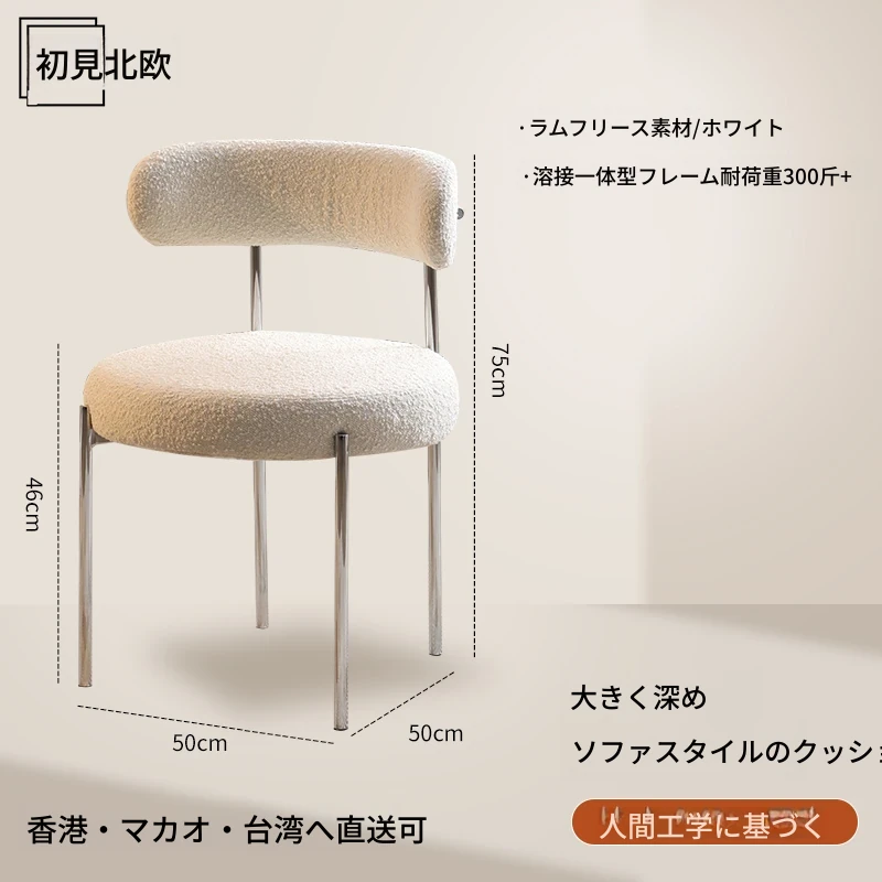 MARCデザイナー製の洗えるラムファブリック製クリーム色の北欧スタイルのテディファーサポートチェア - おしゃれで快適なメイクアップチェアとして最適!