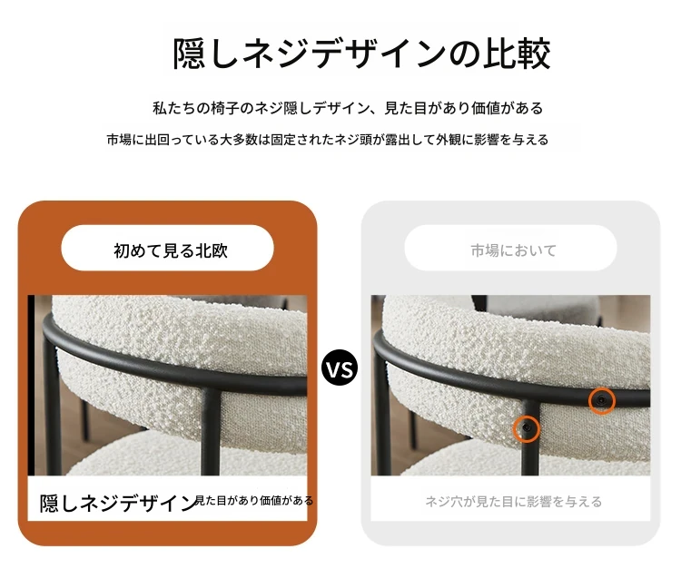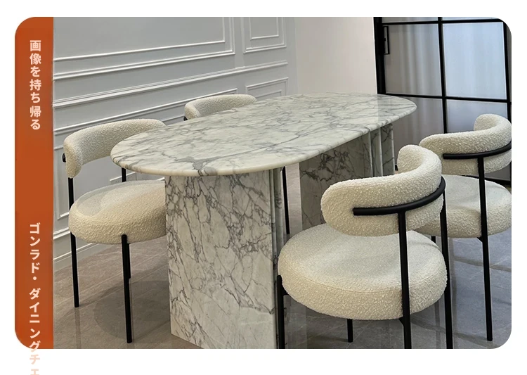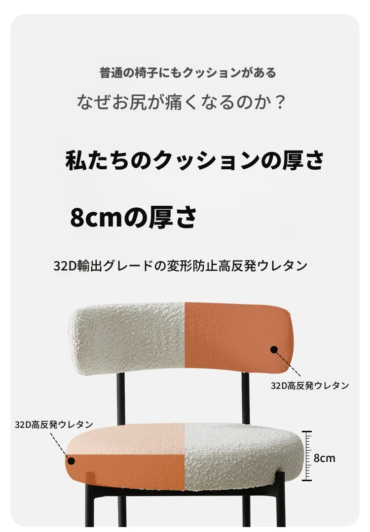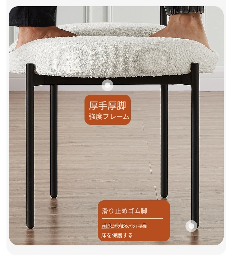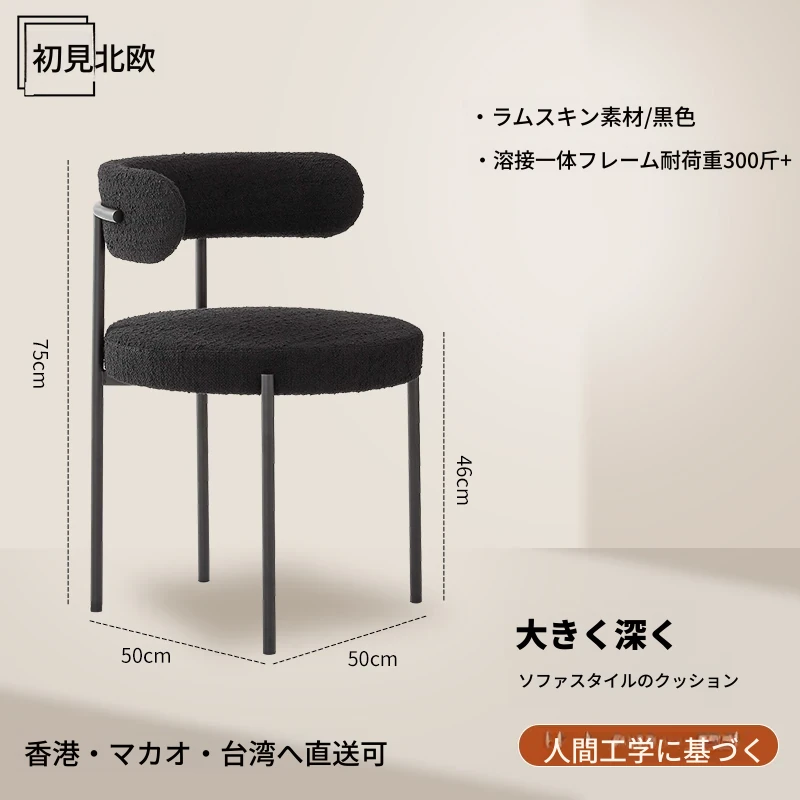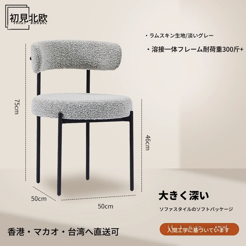 MARCデザイナー製の洗えるラムファブリック製クリーム色の北欧スタイルのテディファーサポートチェア - おしゃれで快適なメイクアップチェアとして最適!