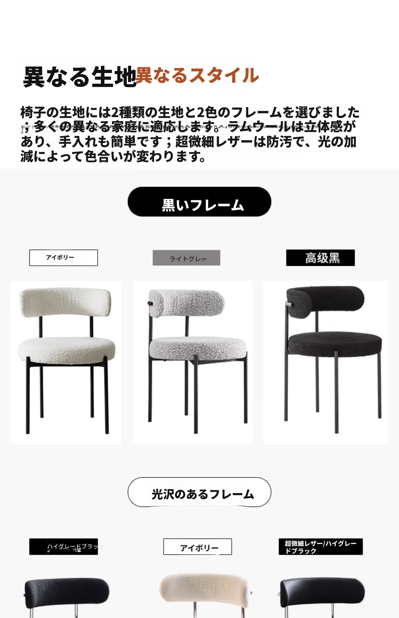 アイボリー色 着脱可能なシートカバー【マットブラックの椅子脚】