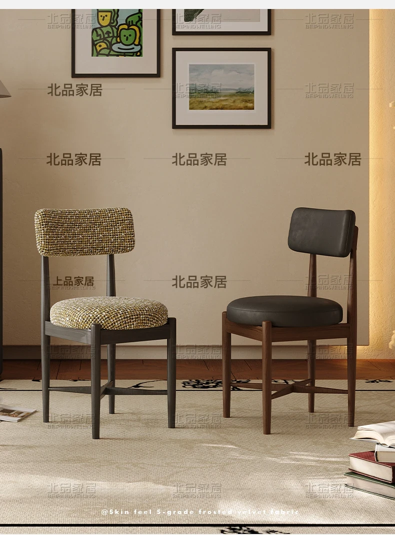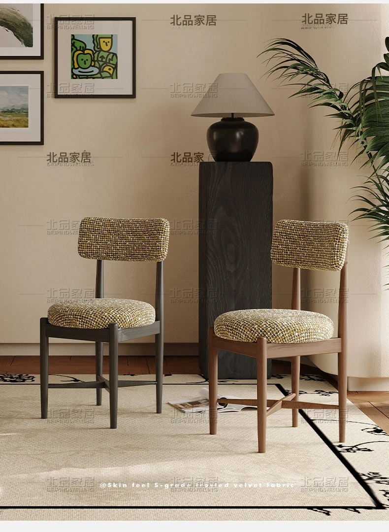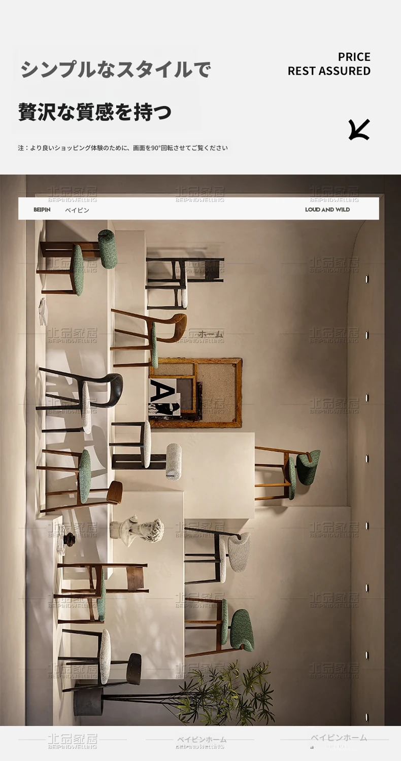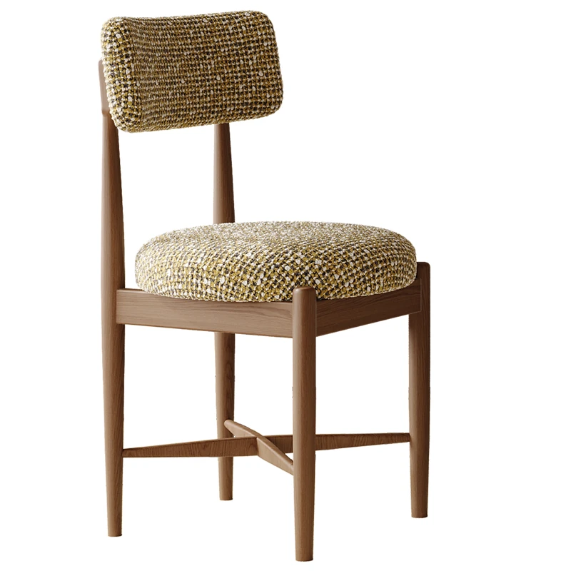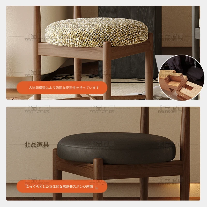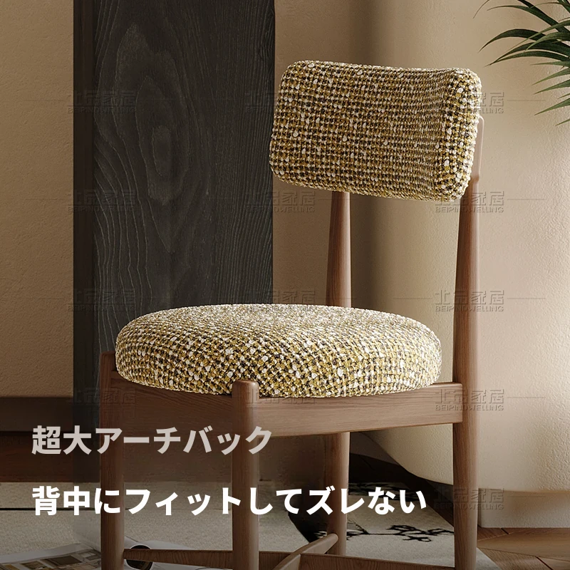中古のシンプルなホワイトアッシュ無垢材ダイニングチェア - 北欧デザインの高級侘寂風、柔らかなクッション付き背もたれで快適な居心地を提供!あなたの食卓に洗練されたスタイルを。