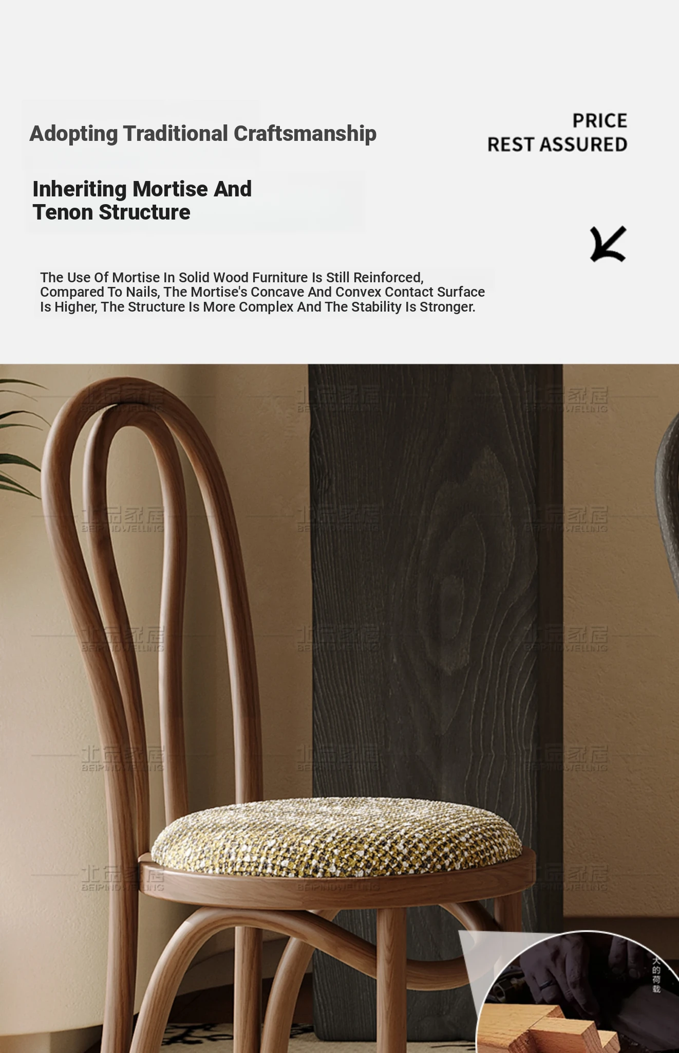 Minimalist White Waxed Solid Wood Dining Chair in Wabi-Sabi Style – Nordic Designer Soft Upholstered Backrest for Home and Restaurant Dining Tables