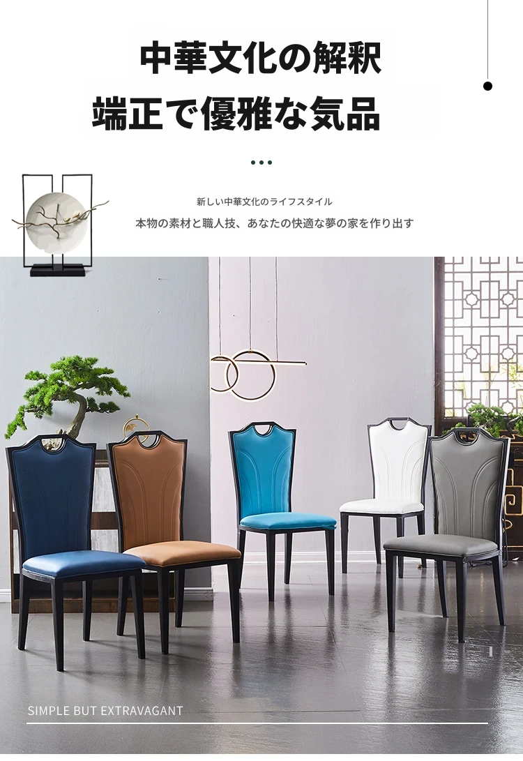 新中式現代簡約のレストラン専用椅子 - 高級感溢れる鉄製背もたれ付き、宴会や火鍋に最適な包厢用ダイニングチェア。おしゃれで快適な空間を演出します!