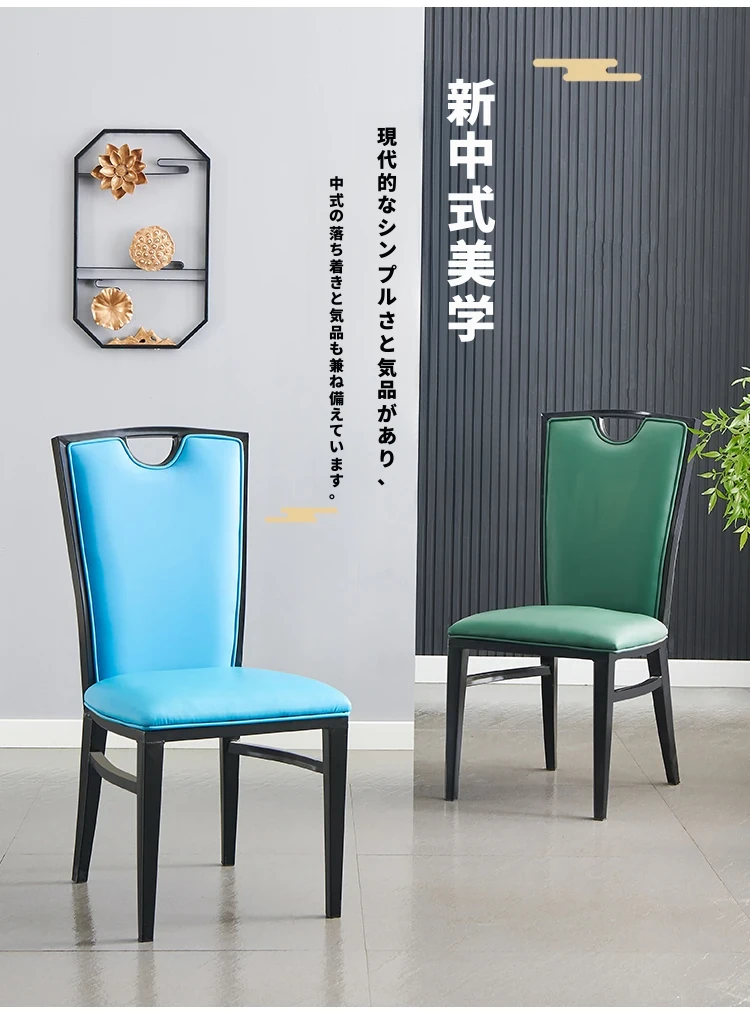 新中式スタイルのホテルレストラン用パーティーチェア|鉄製モダンデザイン|シンプルで洗練された火鍋・焼肉店に最適な背もたれ付きチェア