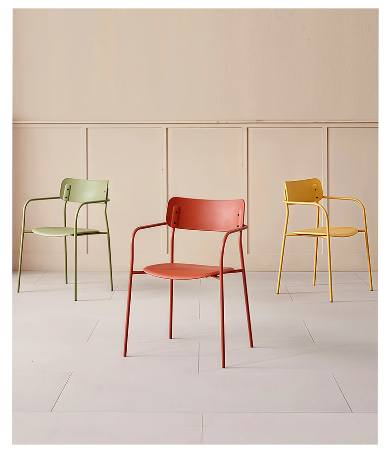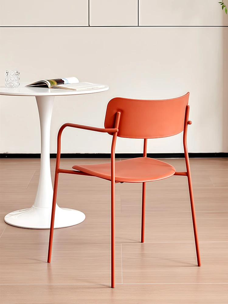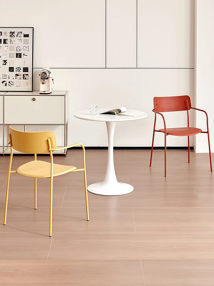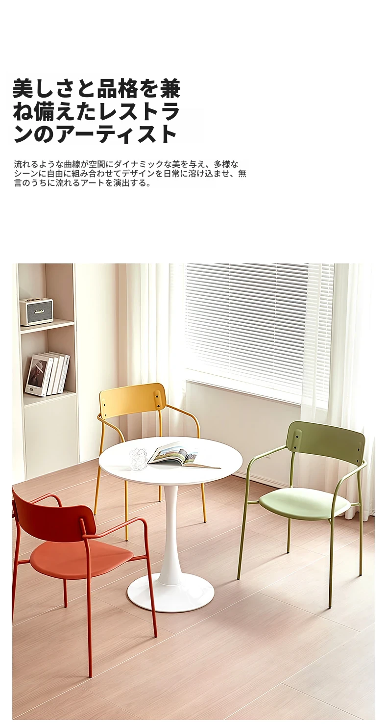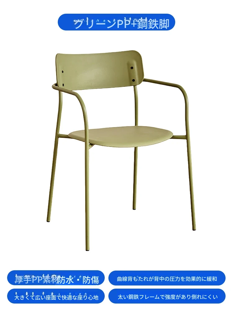 現代的クリエイティブなアイアン背もたれ付きアームチェア - シンプルでスタイリッシュなカフェやティーショップにぴったり!快適な座り心地で、リラックスしたひとときを提供するテーブルと椅子のセット。商談や接待にも最適です。