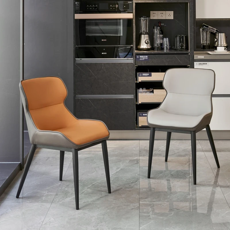 モダンミニマリストデザイン!高級感あふれるレザー背もたれのダイニングチェア。北欧スタイルで、家庭用やホテル、デスクやドレッサーにも最適なシンプルでエレガントな一品。あなたの空間を格上げします!