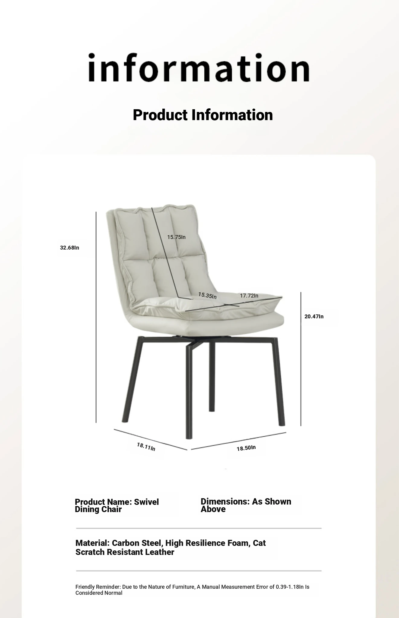Modern Minimalist Rotatable Italian Dining Chair for Home - Stylish High-Back Design, Perfect for Your Dining Table - 2025 New Model
