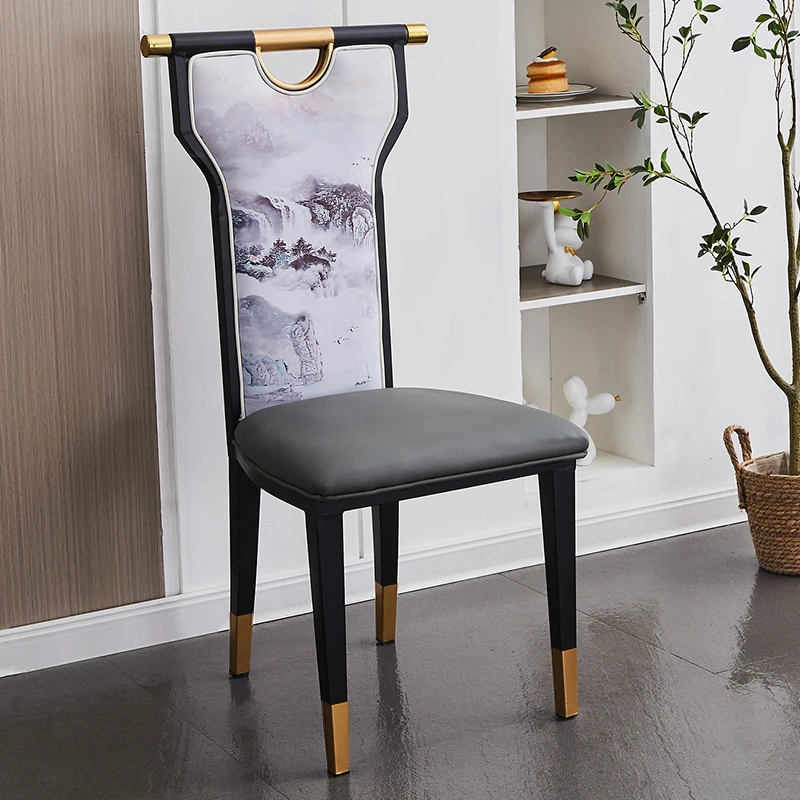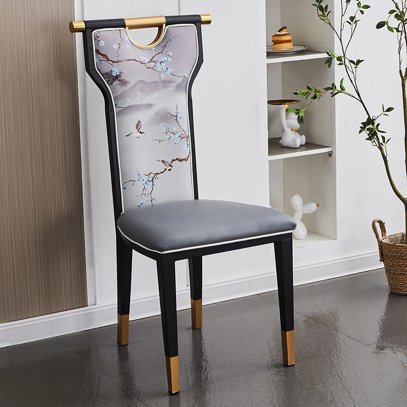 新中式軽奢モダンデザインのホテル用レストランチェア - 鉄製の背もたれ付き、宴会や個室に最適!火鍋店にもぴったりなスタイリッシュな椅子で、上質な食事空間を演出します。