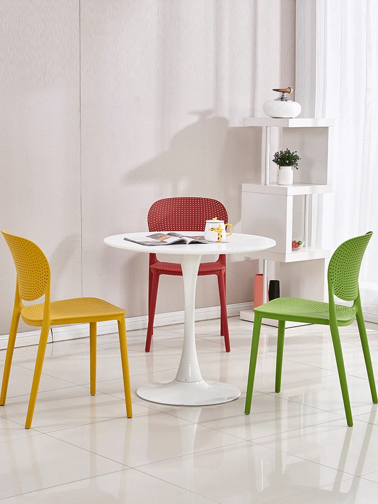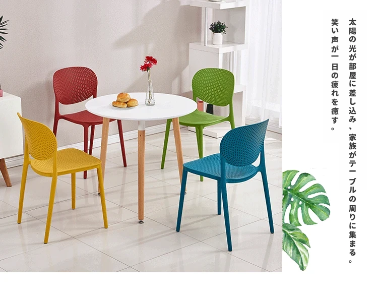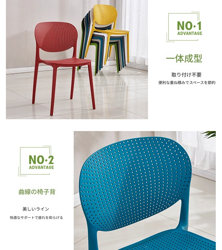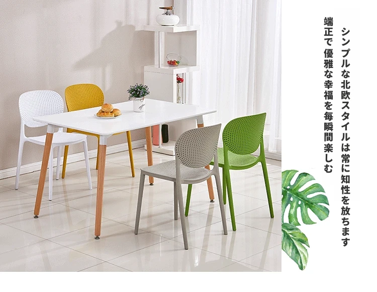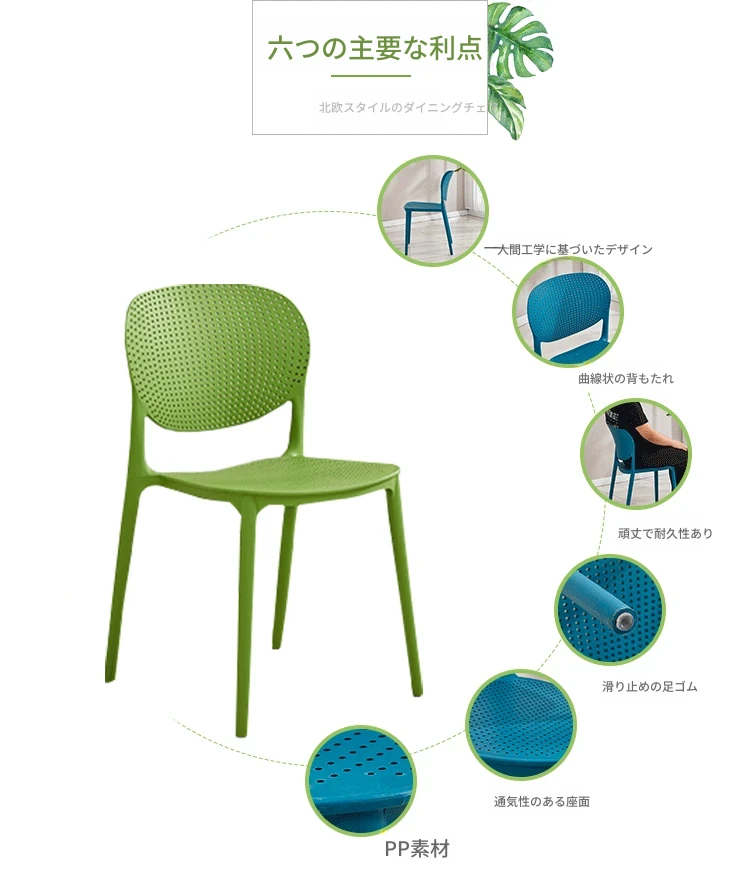 モダンでスタイリッシュなシンプルデザインのプラスチック製ダイニングチェア!一体成型で安心の耐久性、快適なリラックス空間を提供。クリエイティブなデスクチェアとしても大活躍!おしゃれな空間を演出するホールインチェア!