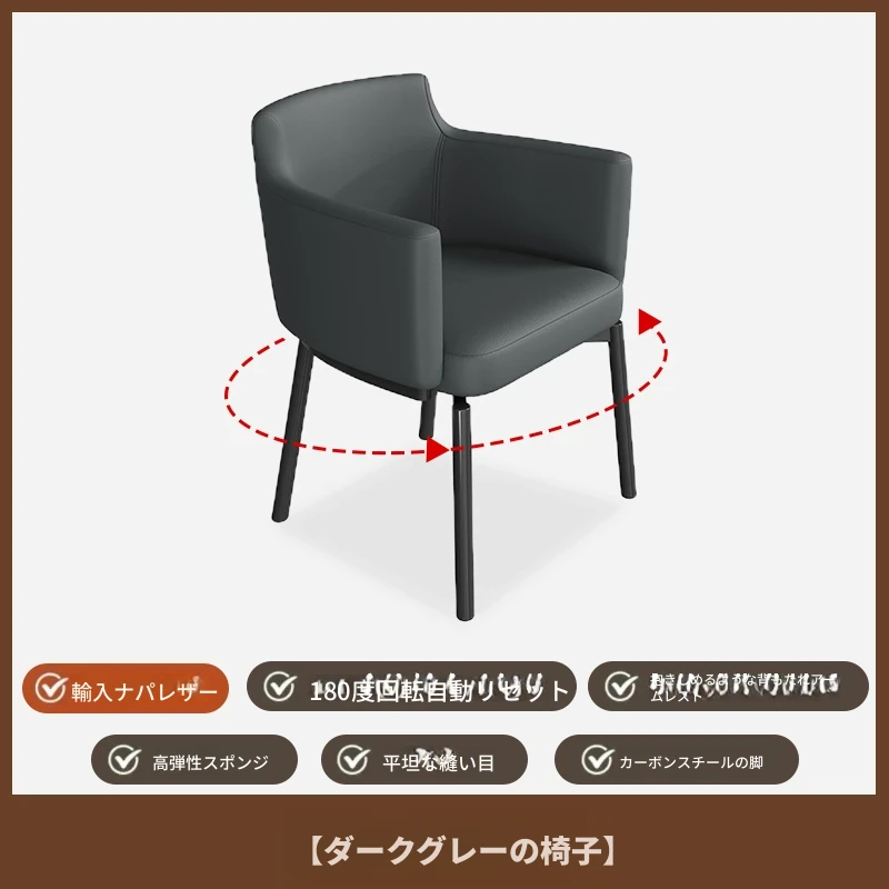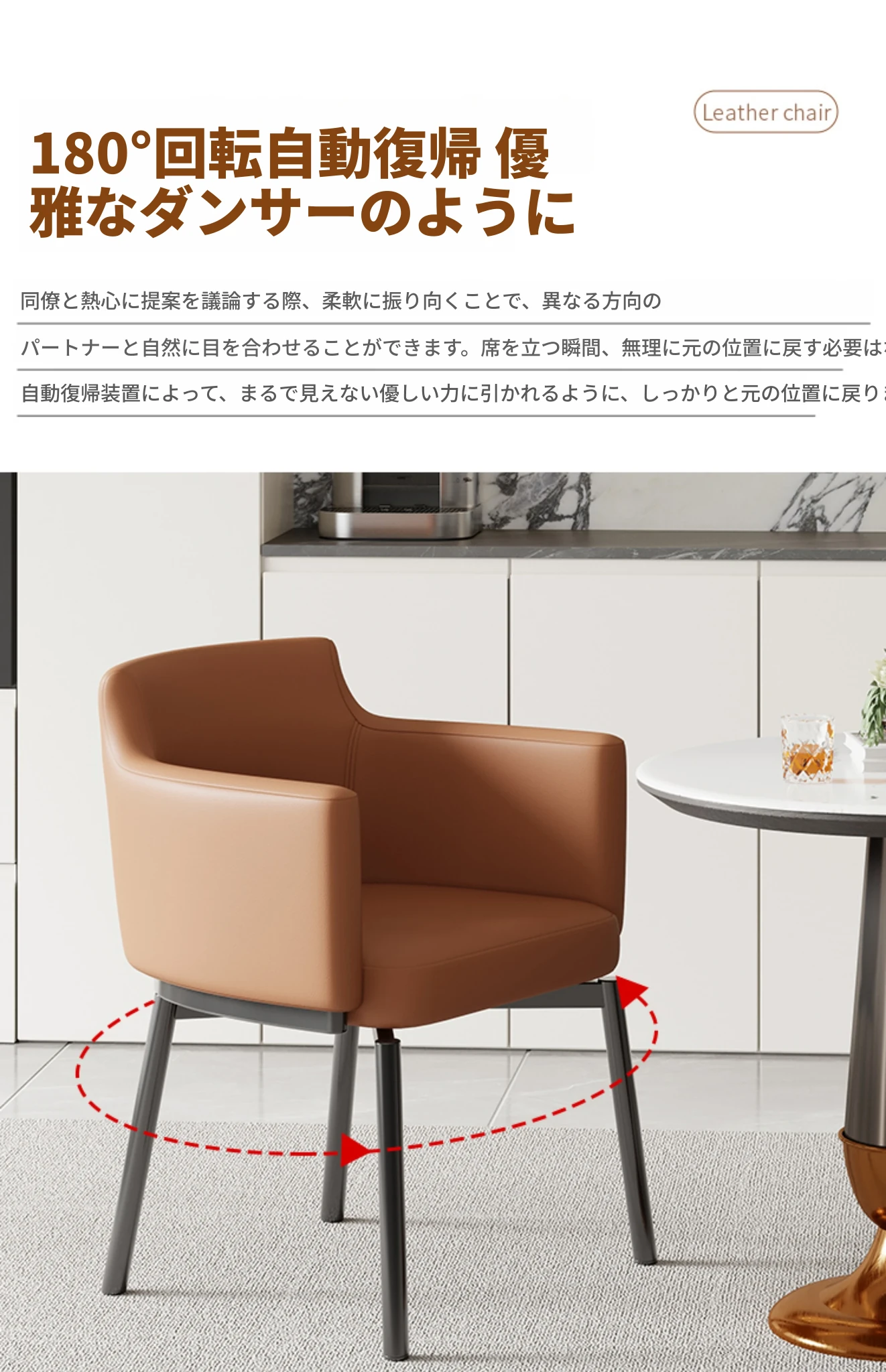 モダンな都市型イタリアンロータリー椅子 - ラグジュアリーな背もたれ付きメイクアップチェア、リラックスした会話を楽しむための高級感あふれるレストラン用ダイニングチェア。