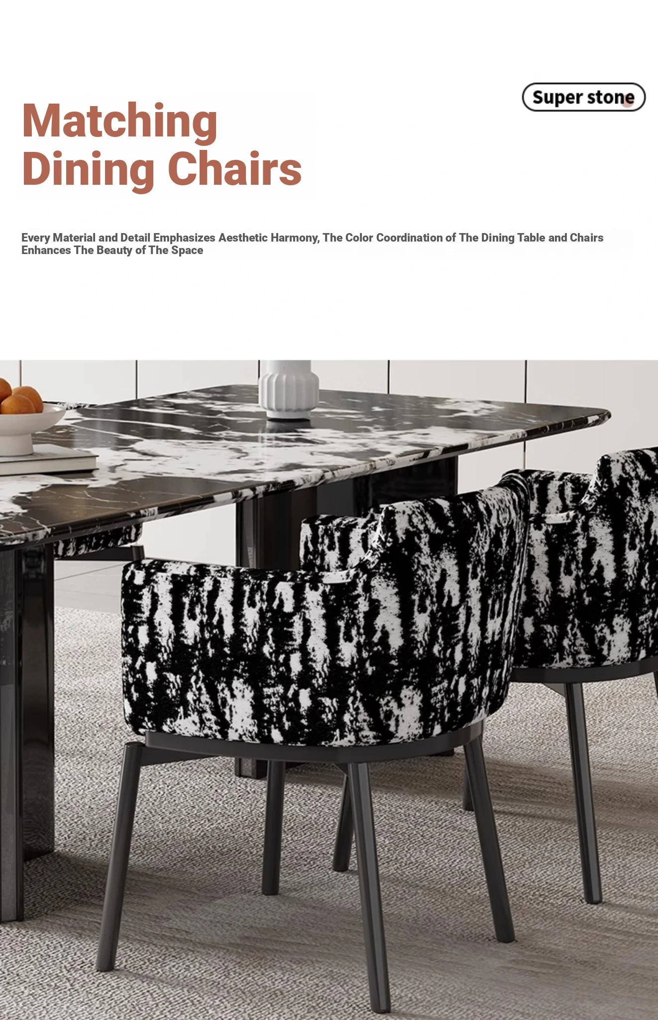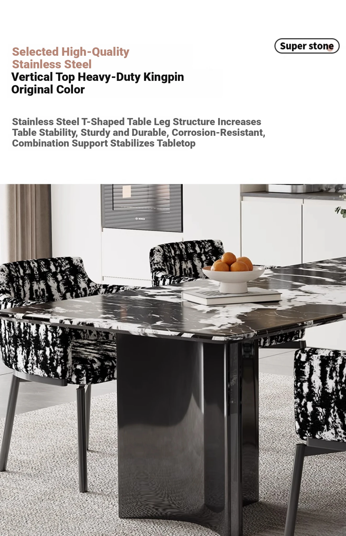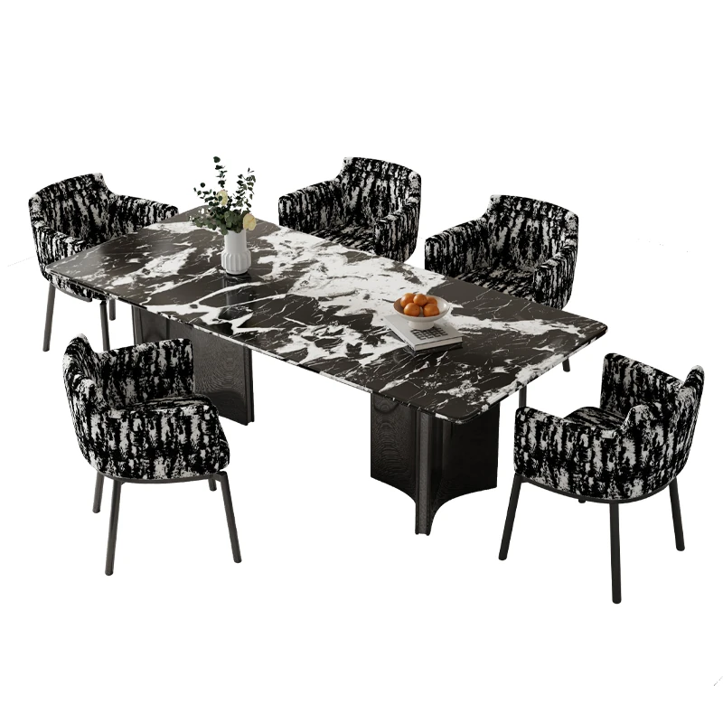 Modern Urban Minimalist Luxury Marble Dining Table Set - Rectangular Design with Chairs, Featuring Italian Ultra Crystal Stone for a Stylish Home Dining Experience.