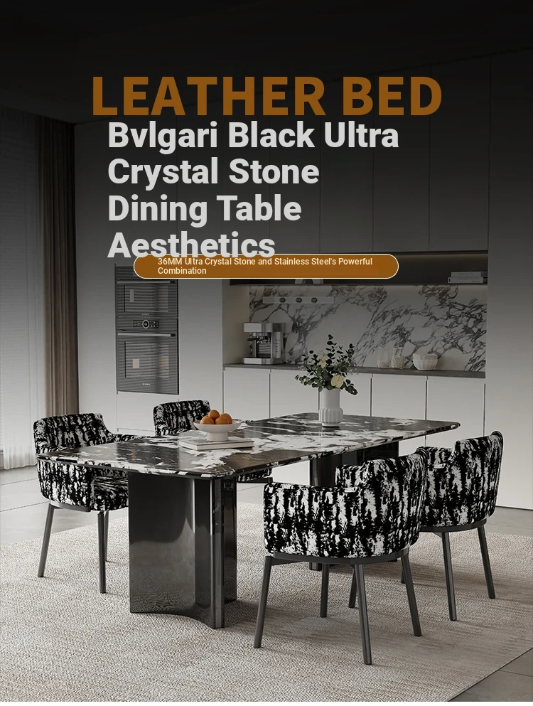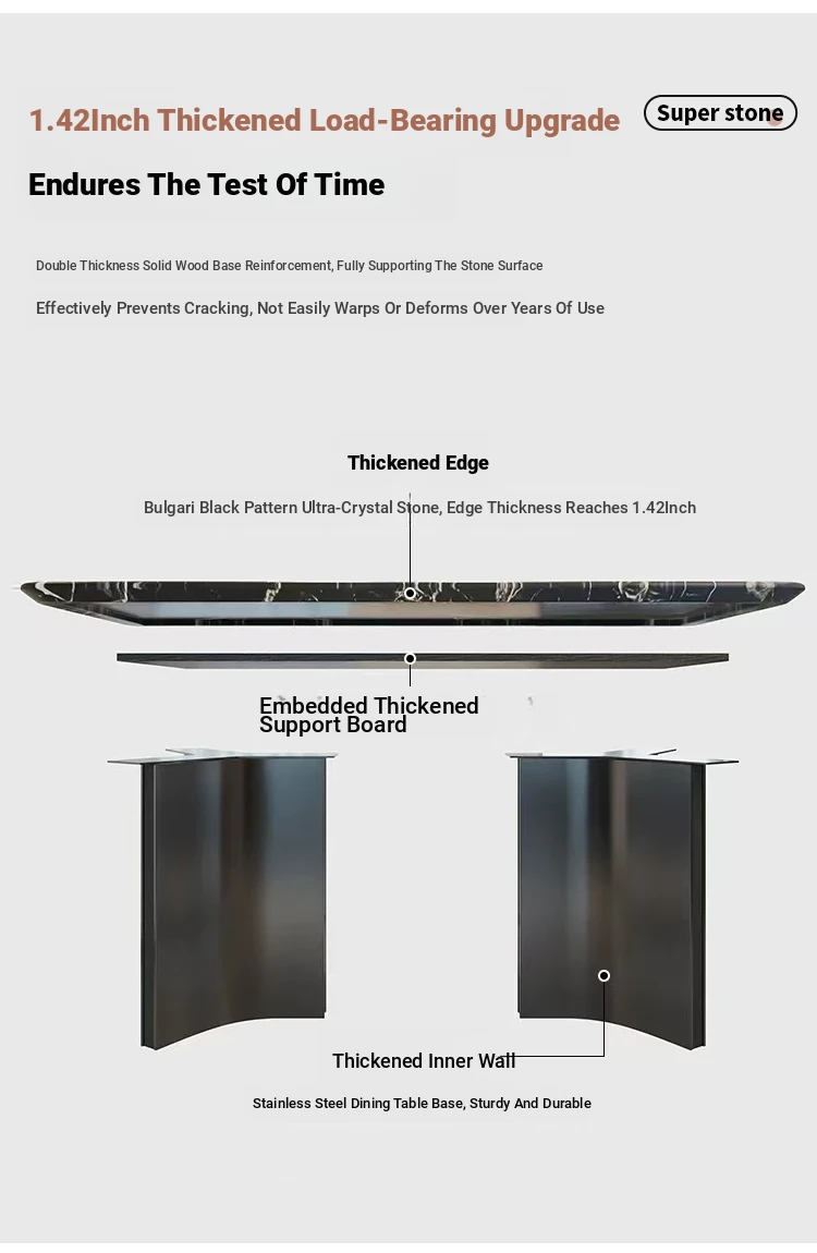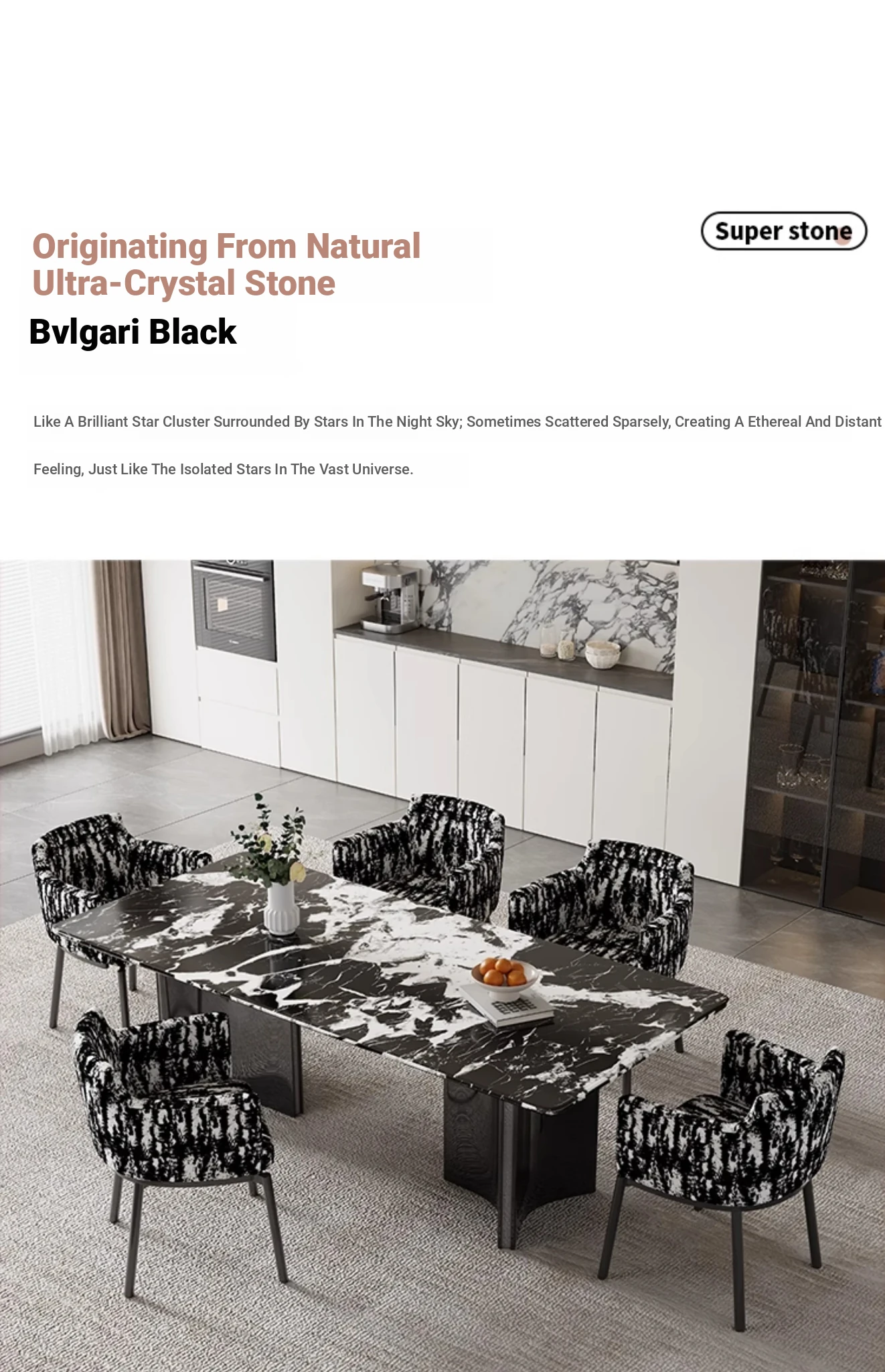 Super Crystal Stone Dining Table [Bulgari Black] 180*90*75