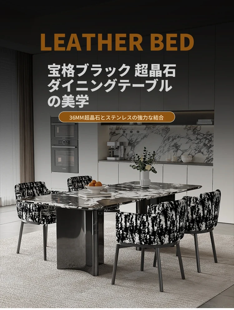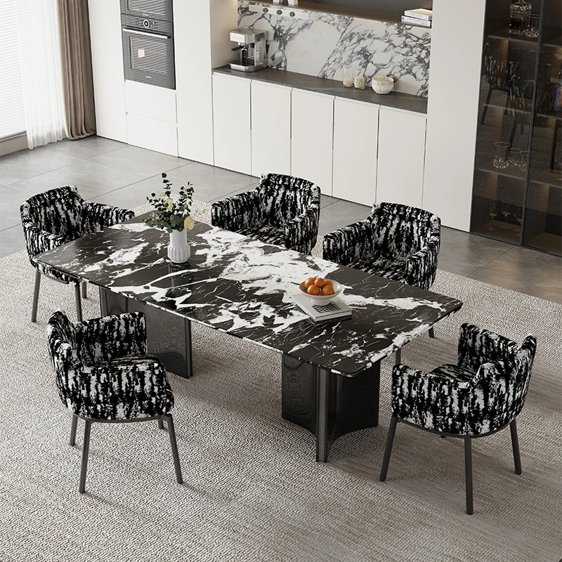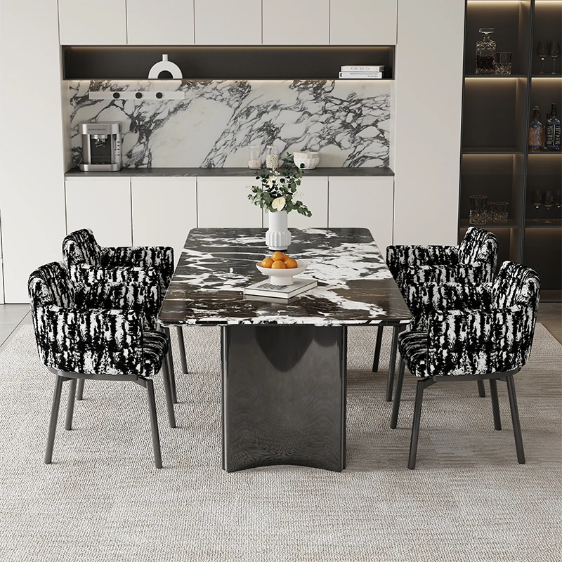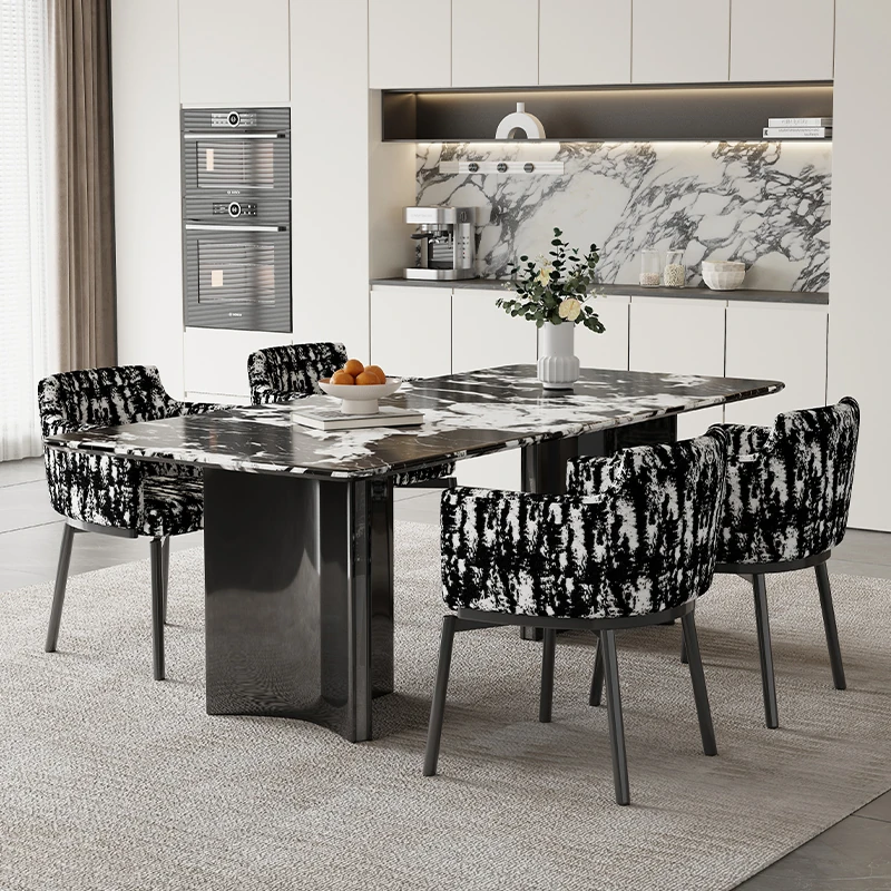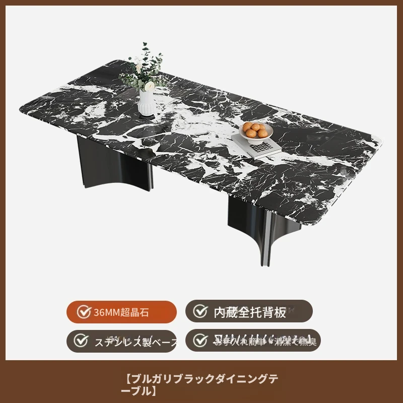 現代的な都市型ラグジュアリー大理石ダイニングテーブル - シンプルでスタイリッシュな長方形テーブルとチェアのセット、イタリアン・ウルトラクリスタル石製、あなたの食卓を美しく彩ります!