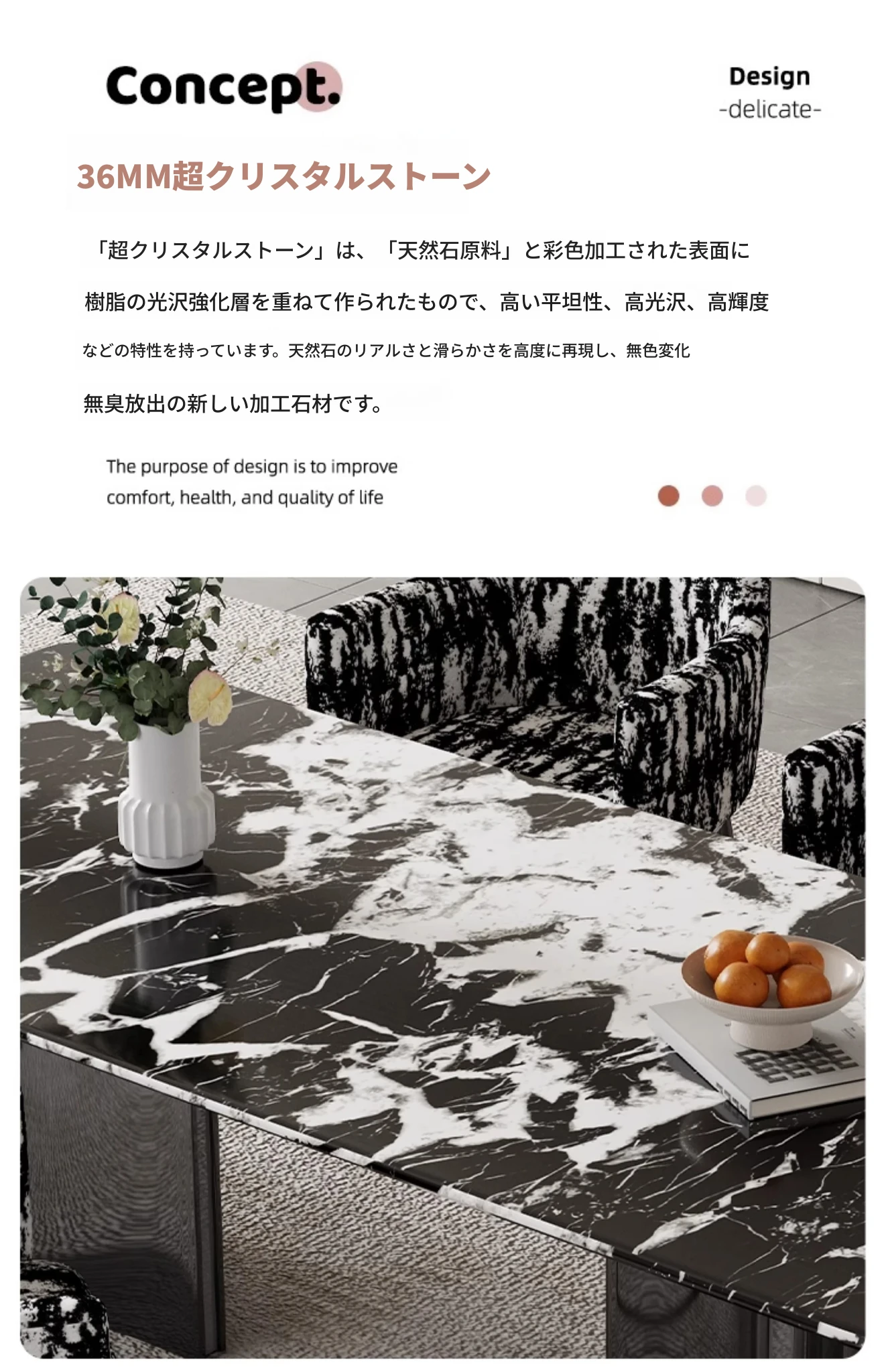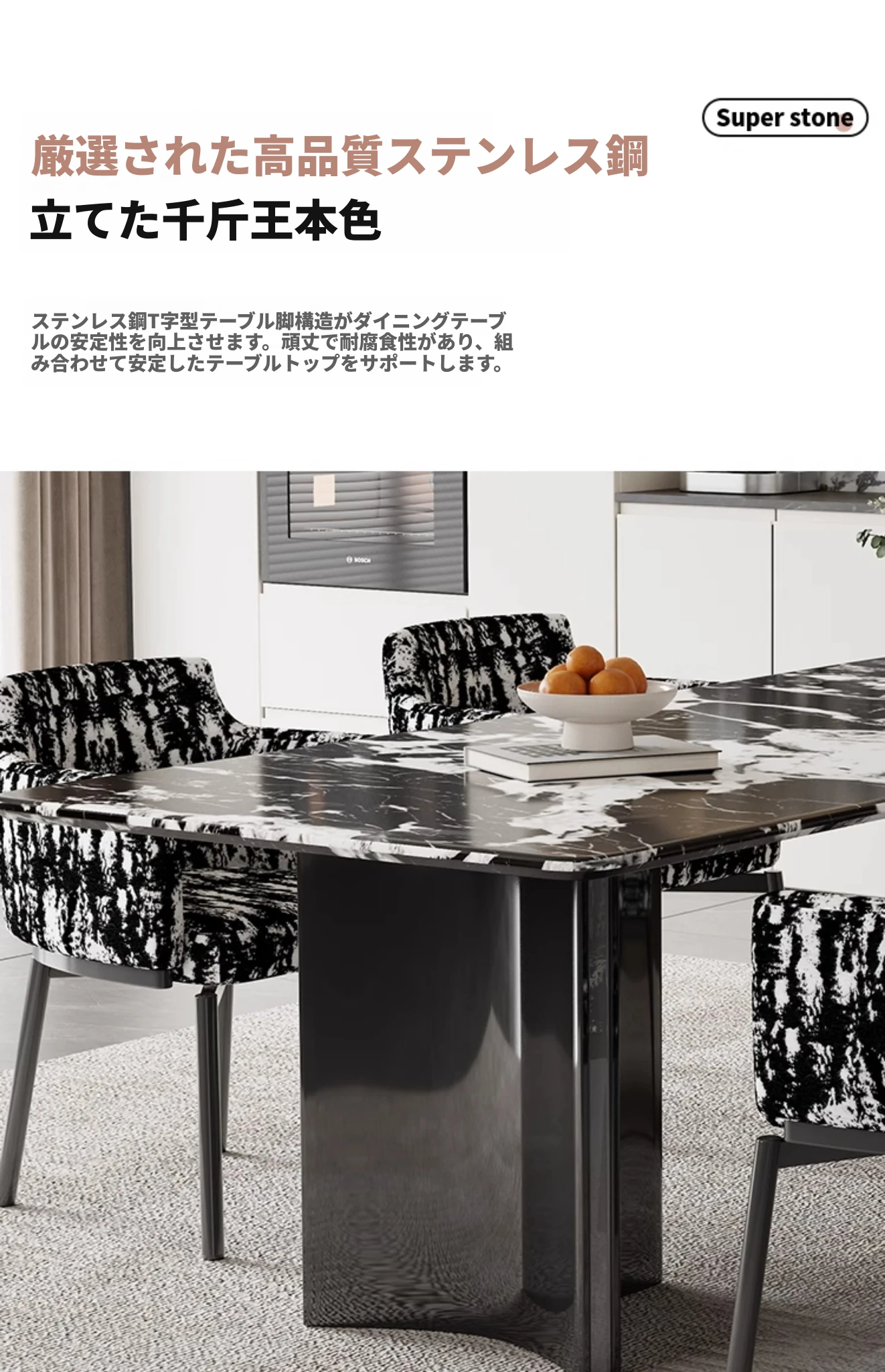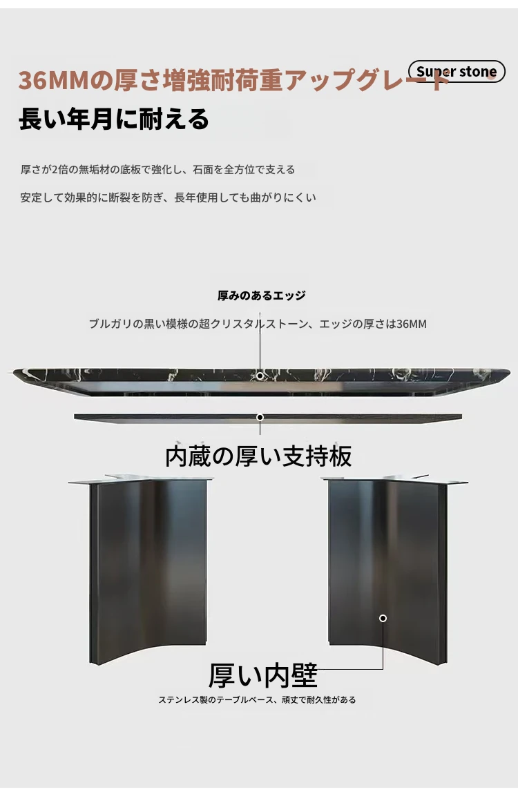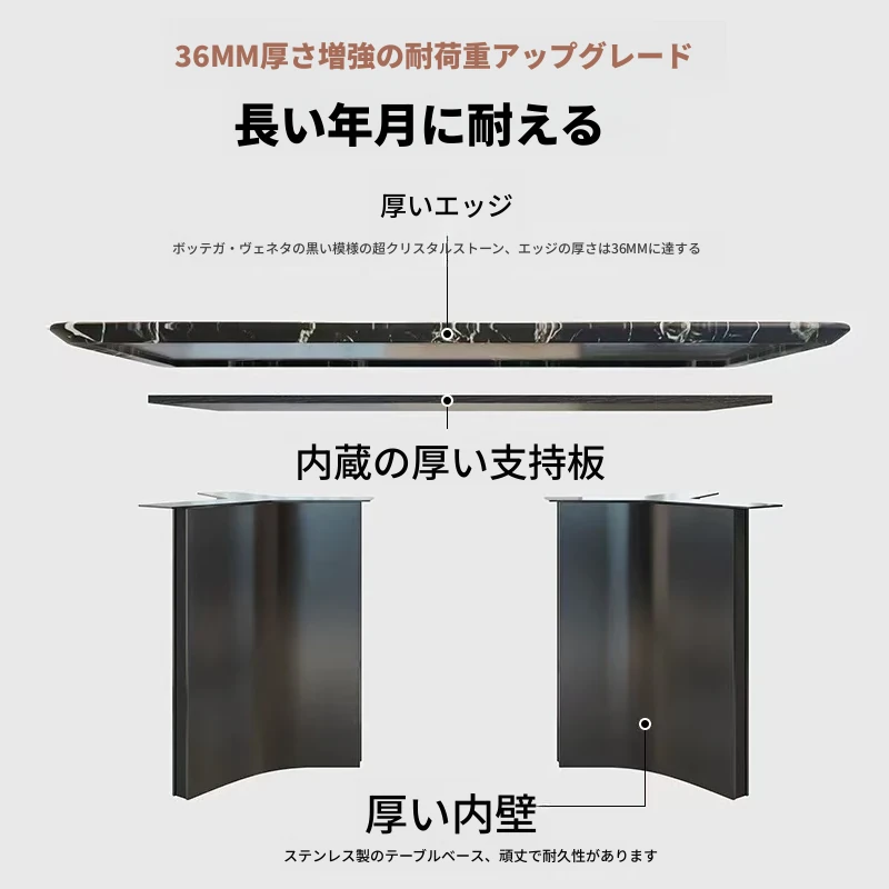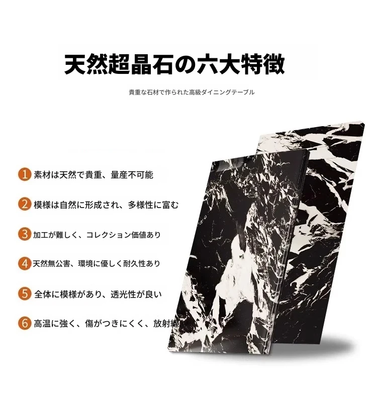 超クリスタルストーンダイニングテーブル【宝格麗ブラック】180*90*75