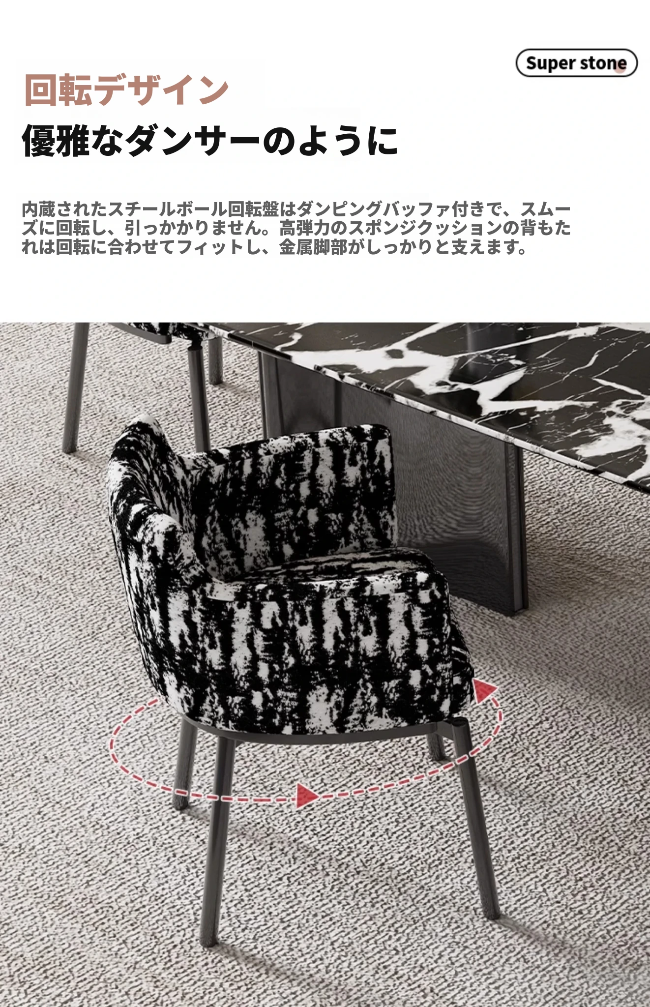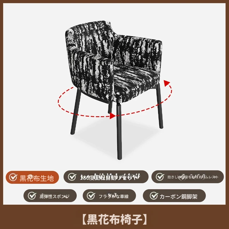 ブラックフラワー生地のダイニングチェア【180度回転】X4脚