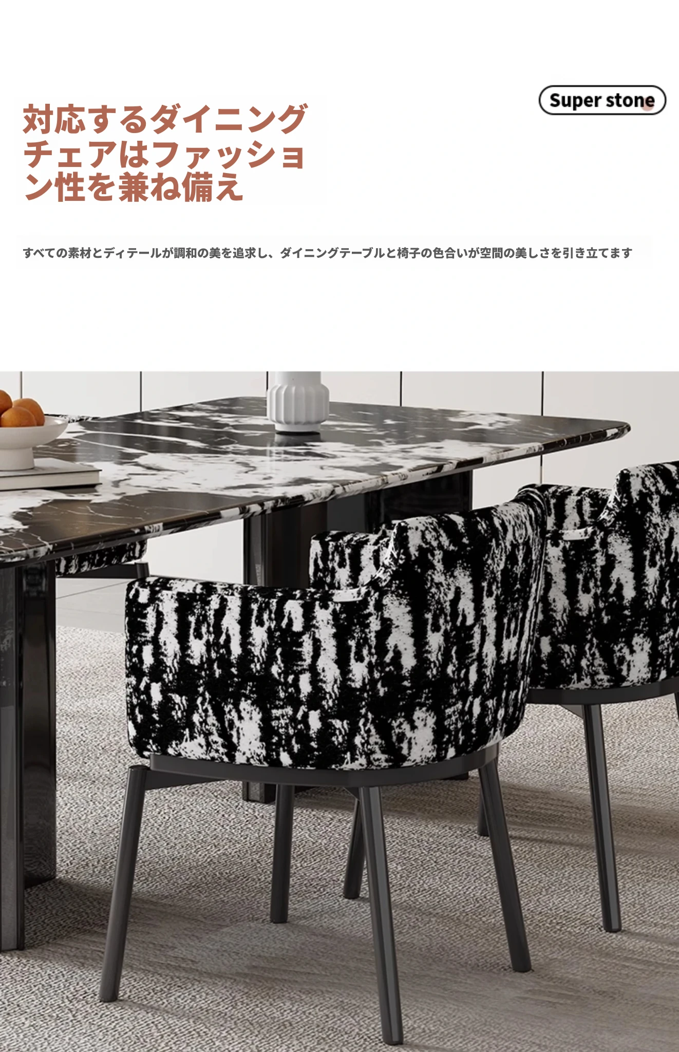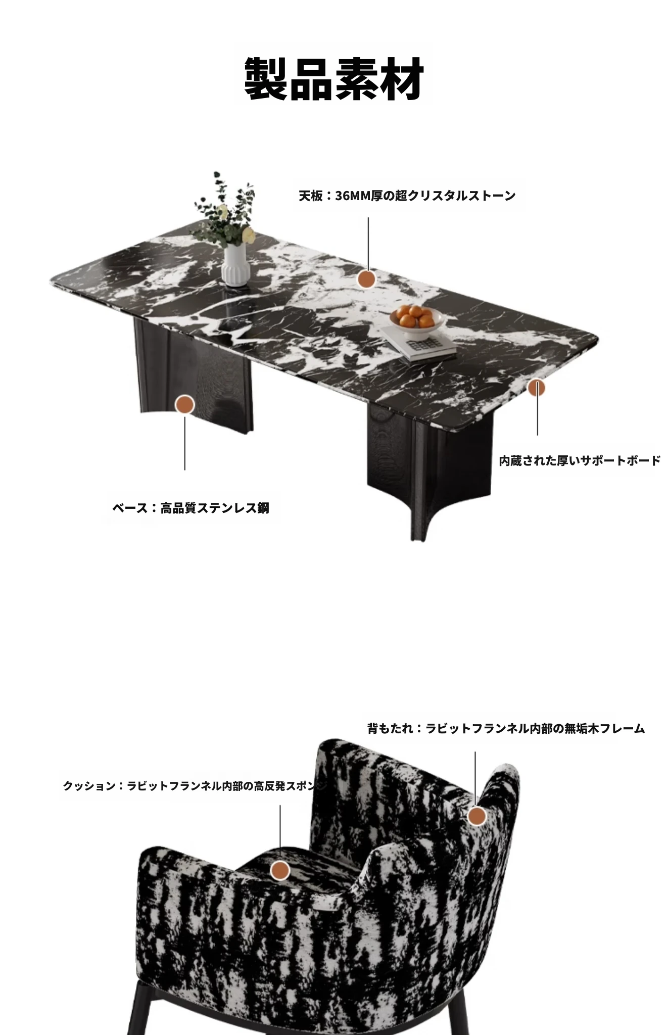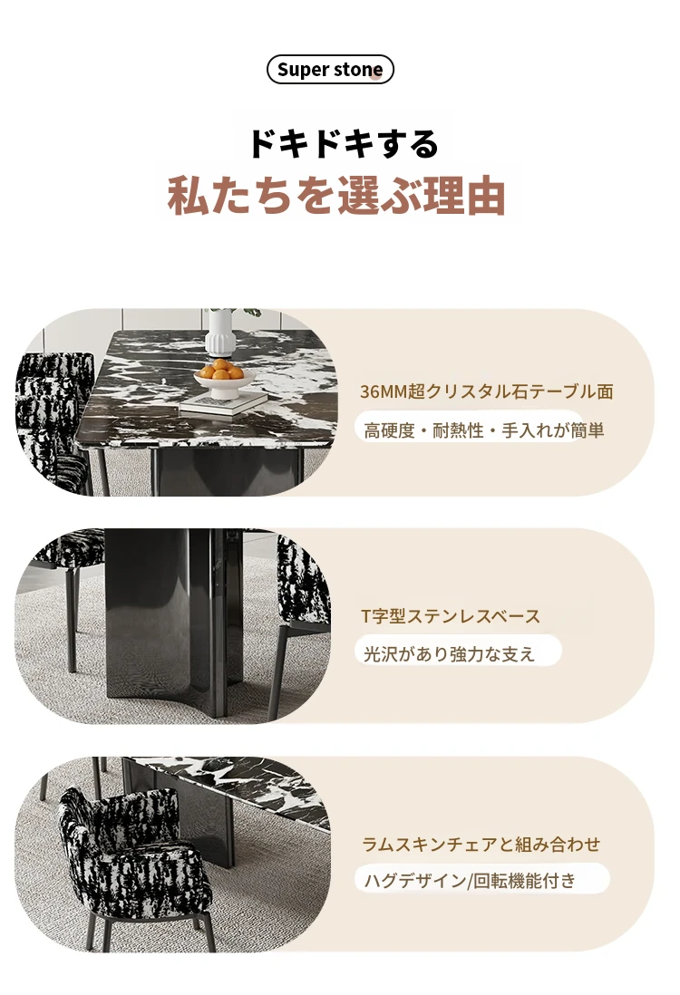 超クリスタルストーンダイニングテーブル【宝格麗ブラック】160*90*75