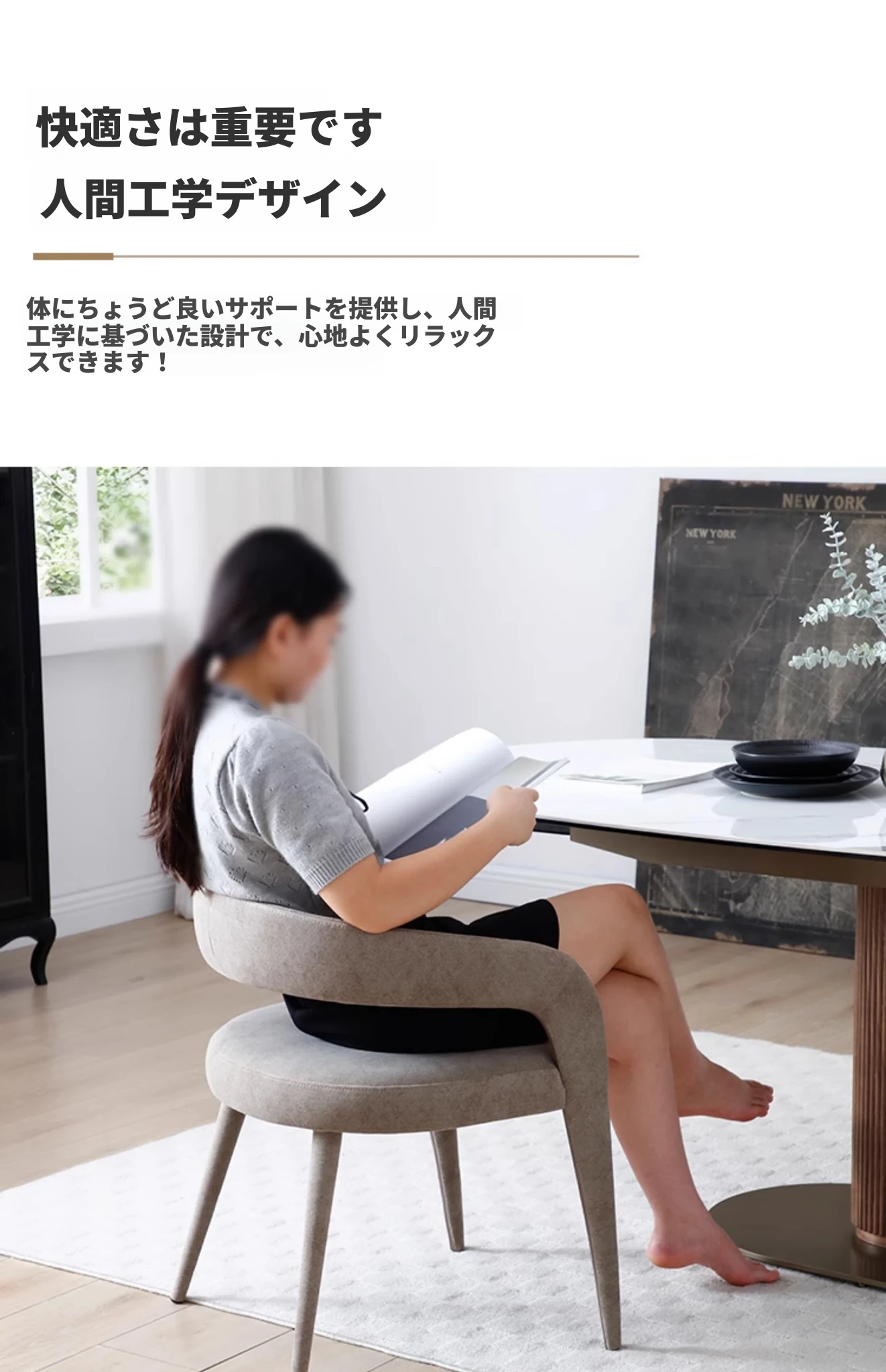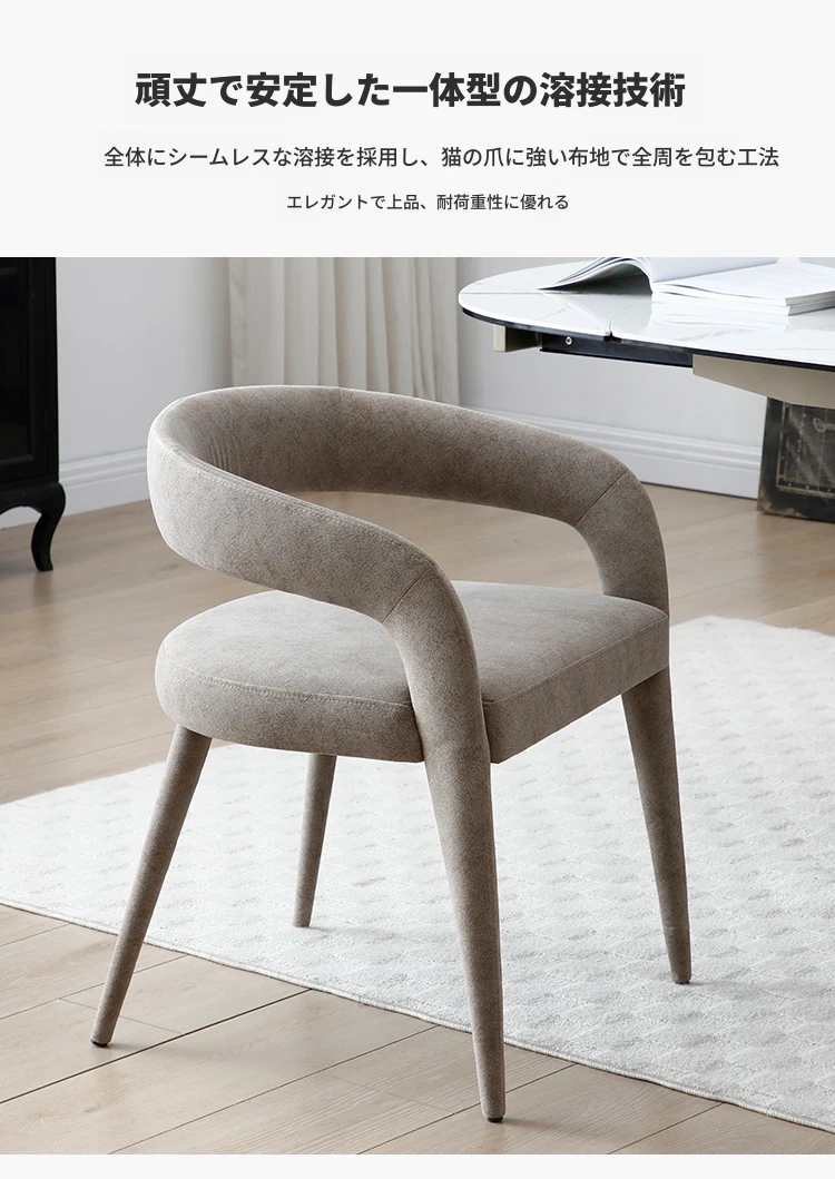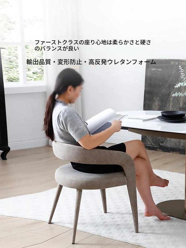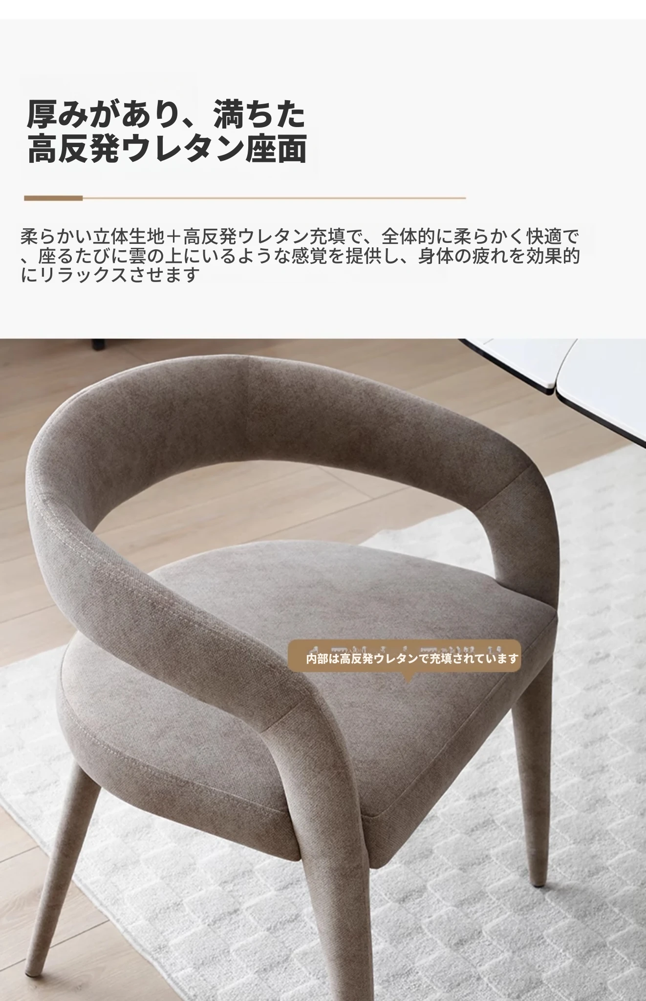 北欧風ハンドル付きダイニングチェア|CB2家具|侘寂スタイルのイタリアンバックレストチェア|柔らかい布張りの化粧椅子で、居心地抜群!