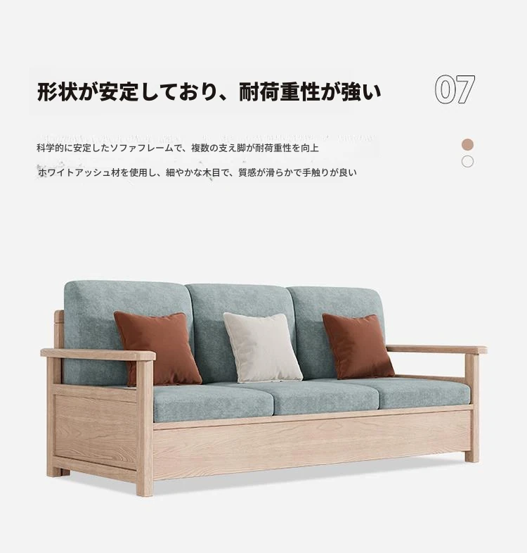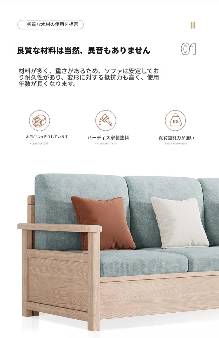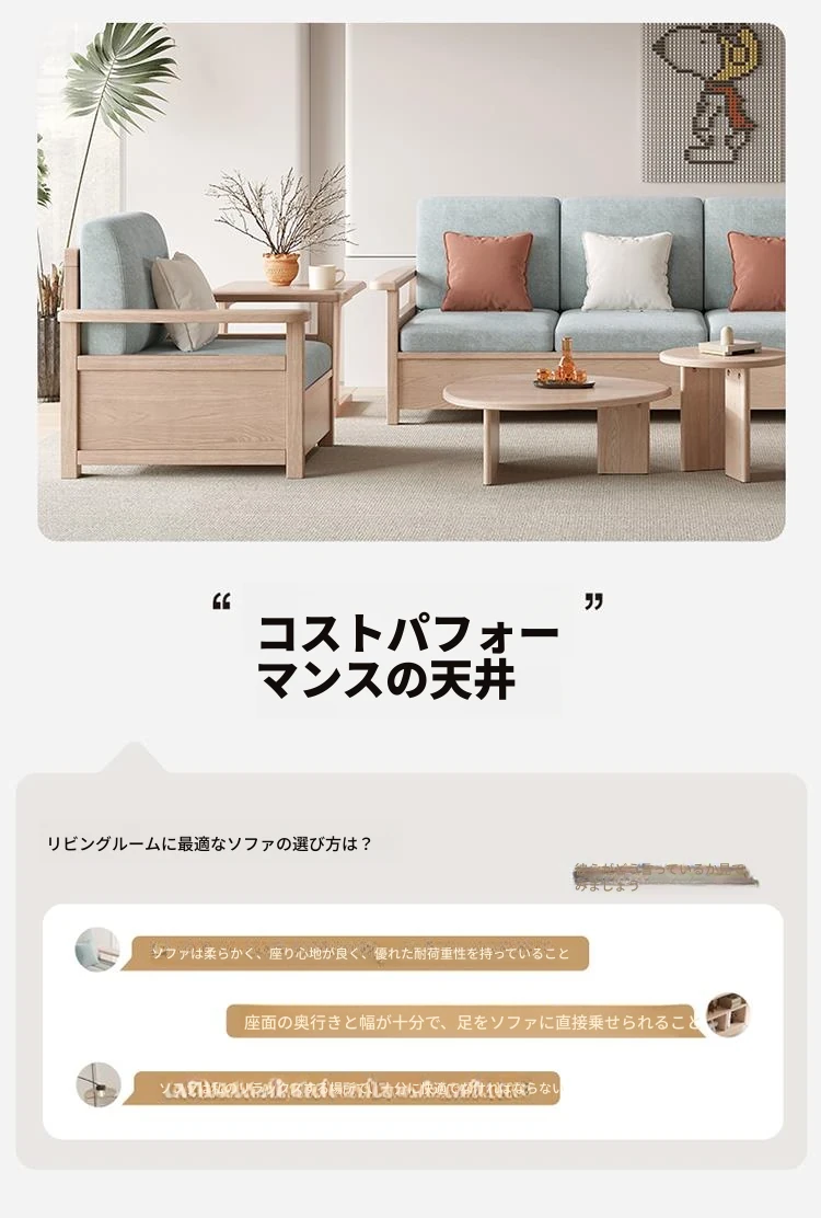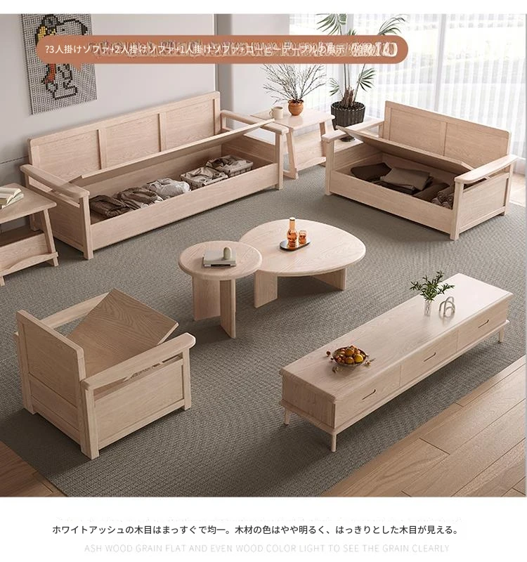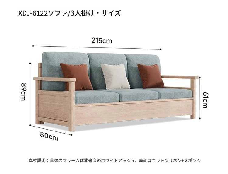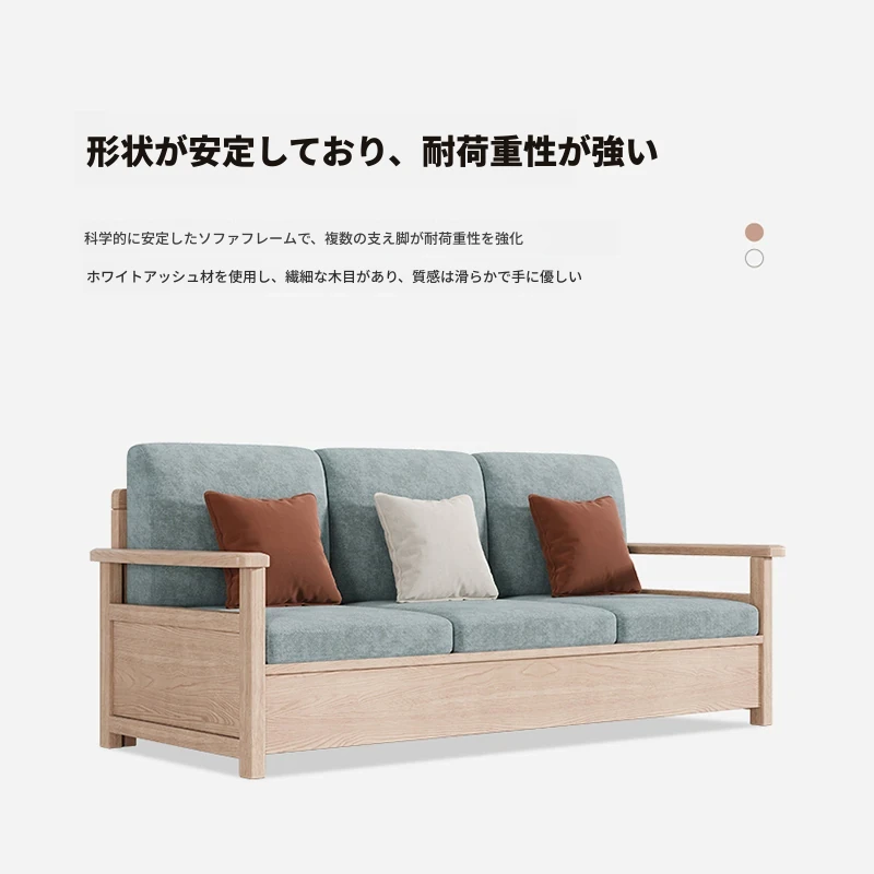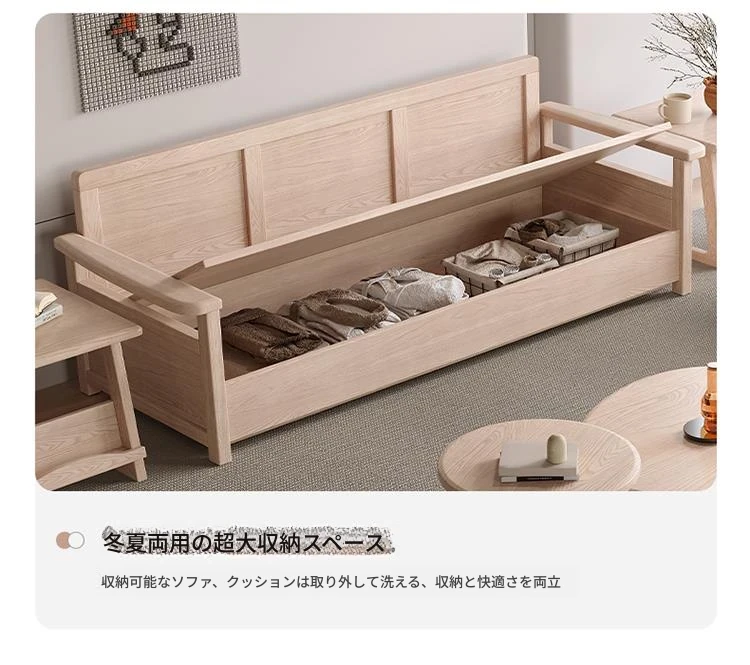 北欧スタイルのホワイトアッシュ無垢材ソファセット123|冬夏兼用のモダンミニマリストリビング用収納家具!快適さとデザインを兼ね備えた理想的な空間を実現します。