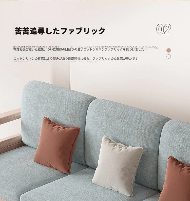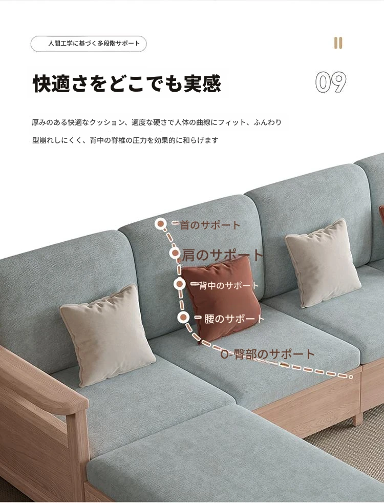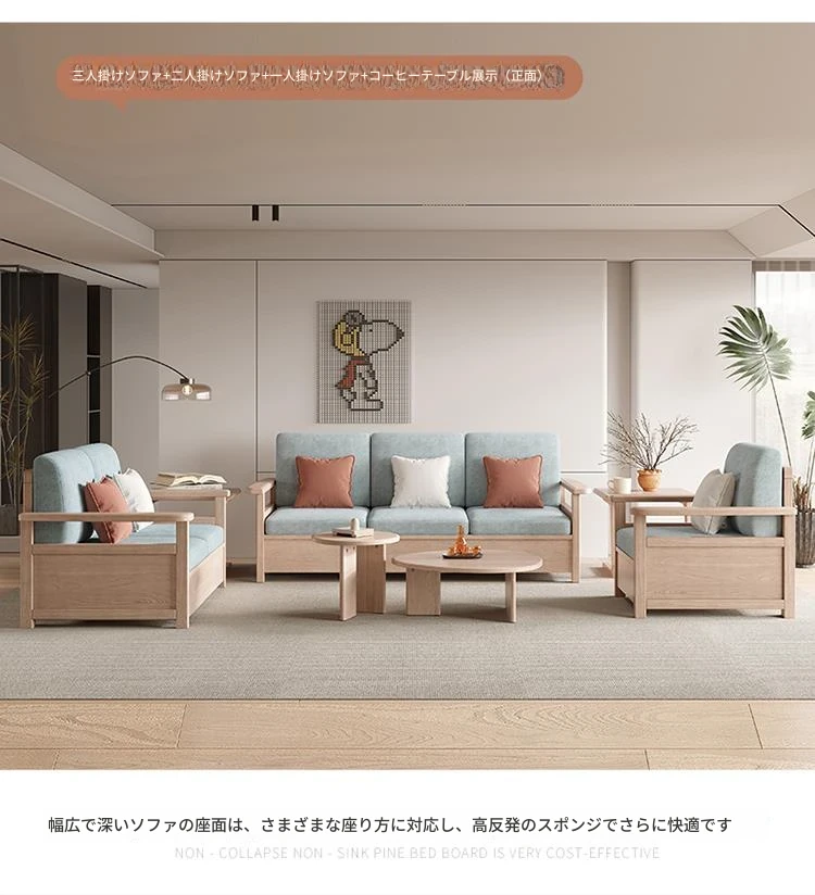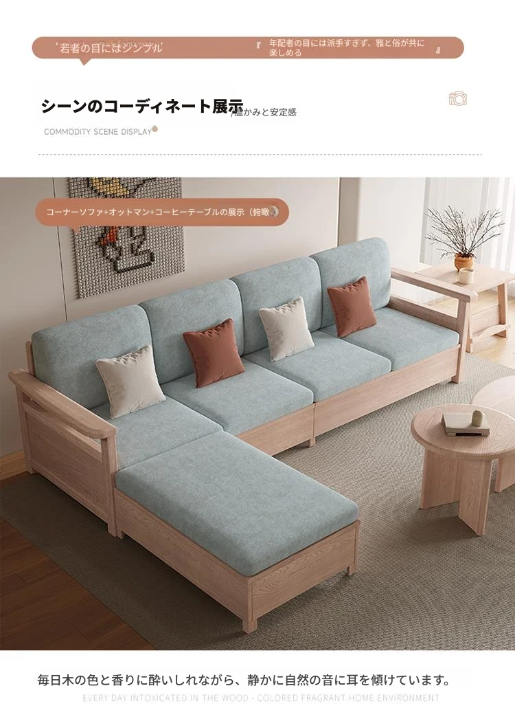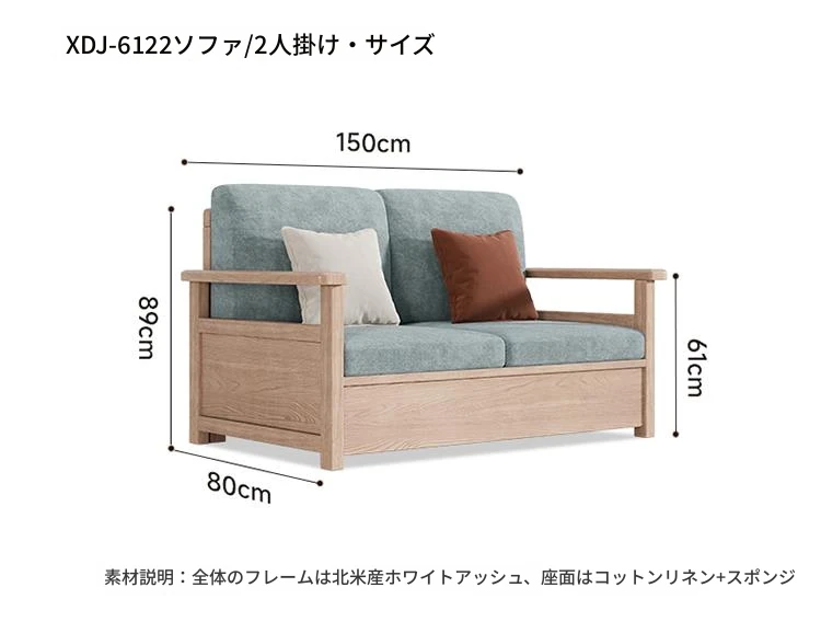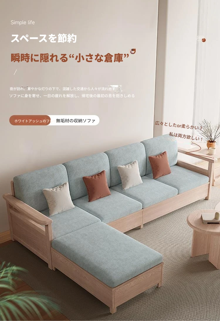 北欧スタイルのホワイトアッシュ無垢材ソファセット123|冬夏兼用のモダンミニマリストリビング用収納家具!快適さとデザインを兼ね備えた理想的な空間を実現します。
