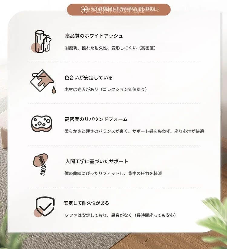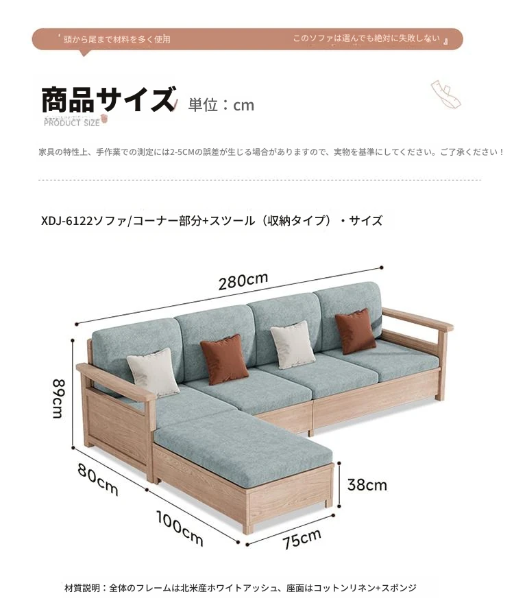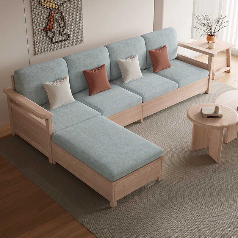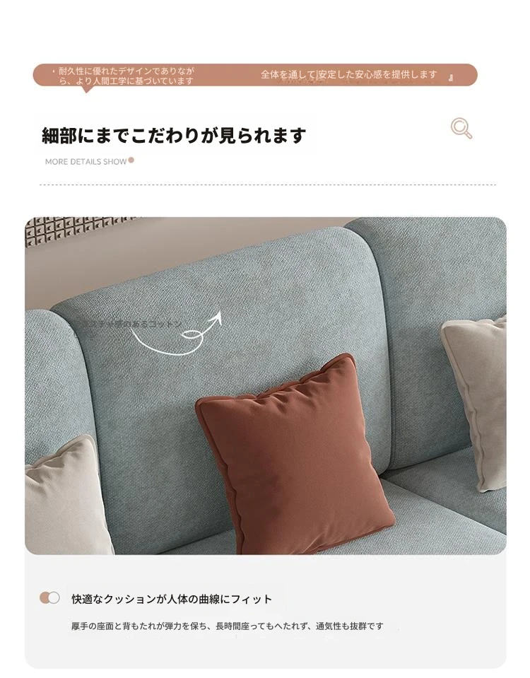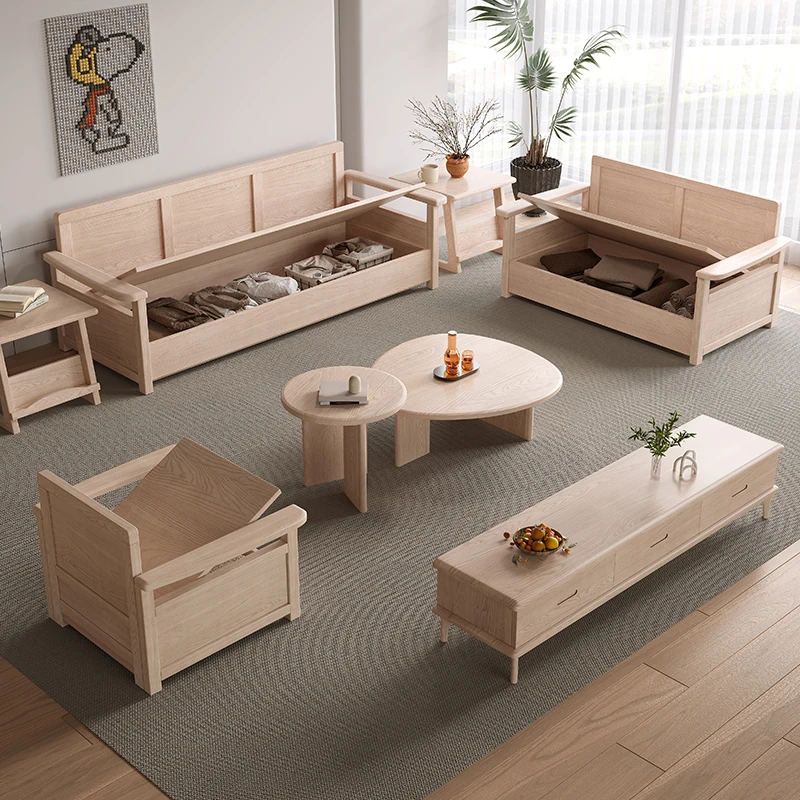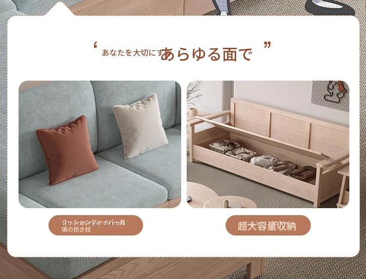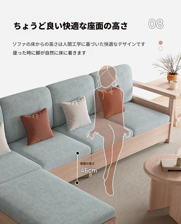 北欧スタイルのホワイトアッシュ無垢材ソファセット123|冬夏兼用のモダンミニマリストリビング用収納家具!快適さとデザインを兼ね備えた理想的な空間を実現します。