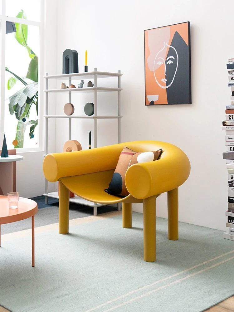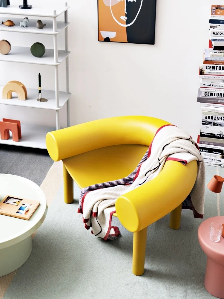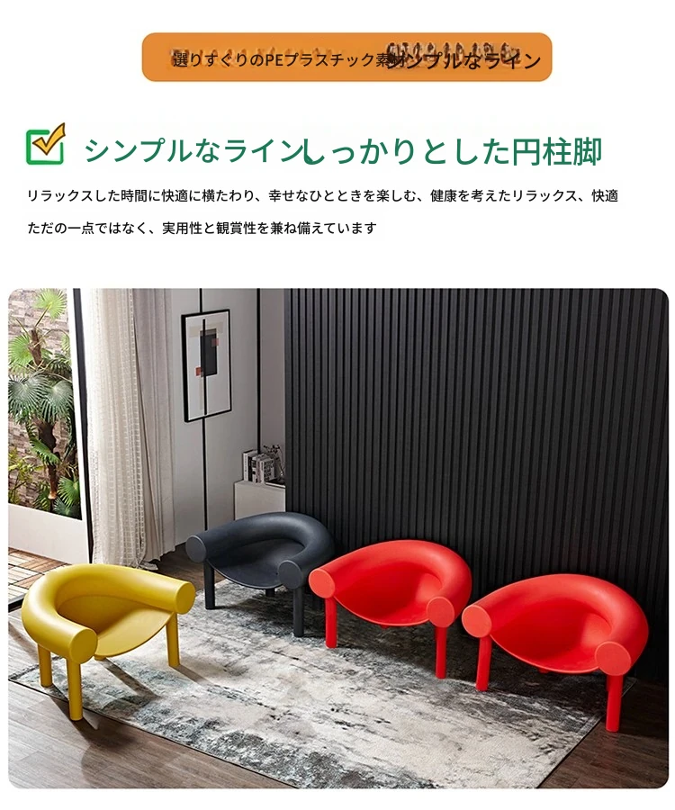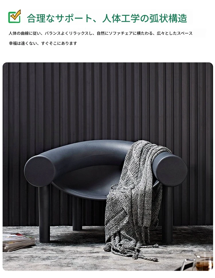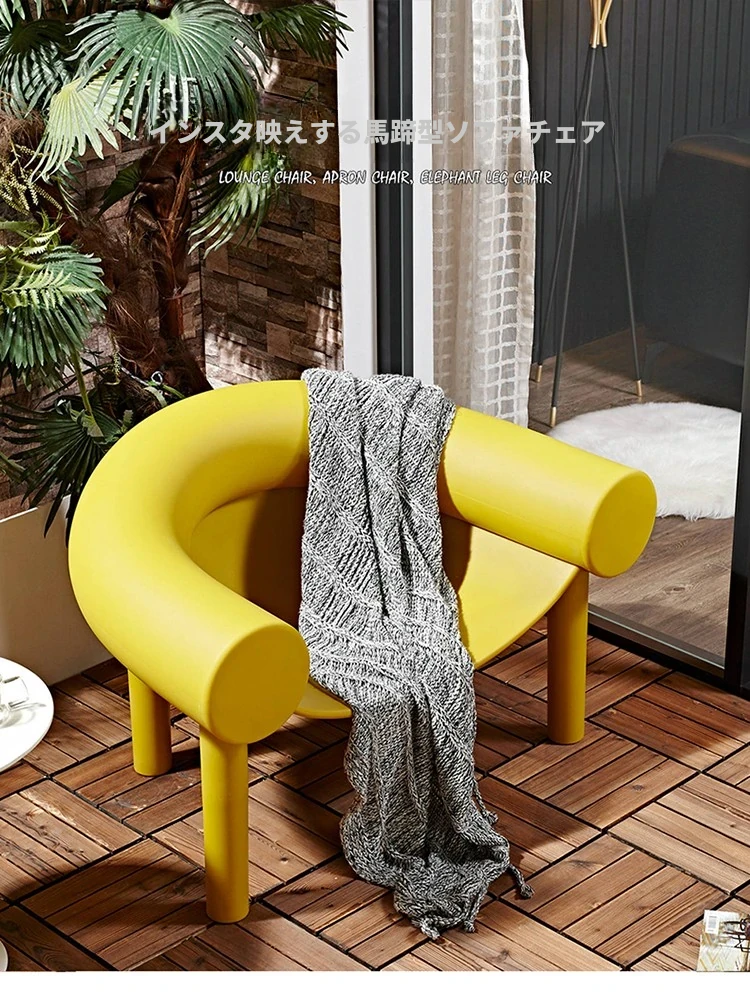 北欧デザインのモダンミニマリストチェア|おしゃれな馬蹄型・象脚デザイン|リラックスできる背もたれ付き|インテリアにぴったりな人気のソファチェア