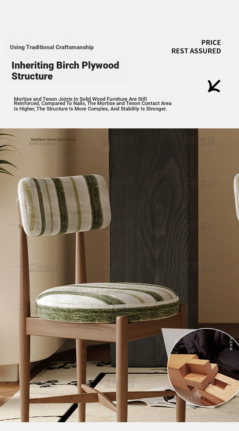 Nordic Designer Solid Ash Wood Dining Chair - Minimalist Mid-Century Modern Home Dining Chair with Luxurious Wabi-Sabi Soft Upholstered Backrest - Perfect for Stylish Dining Spaces