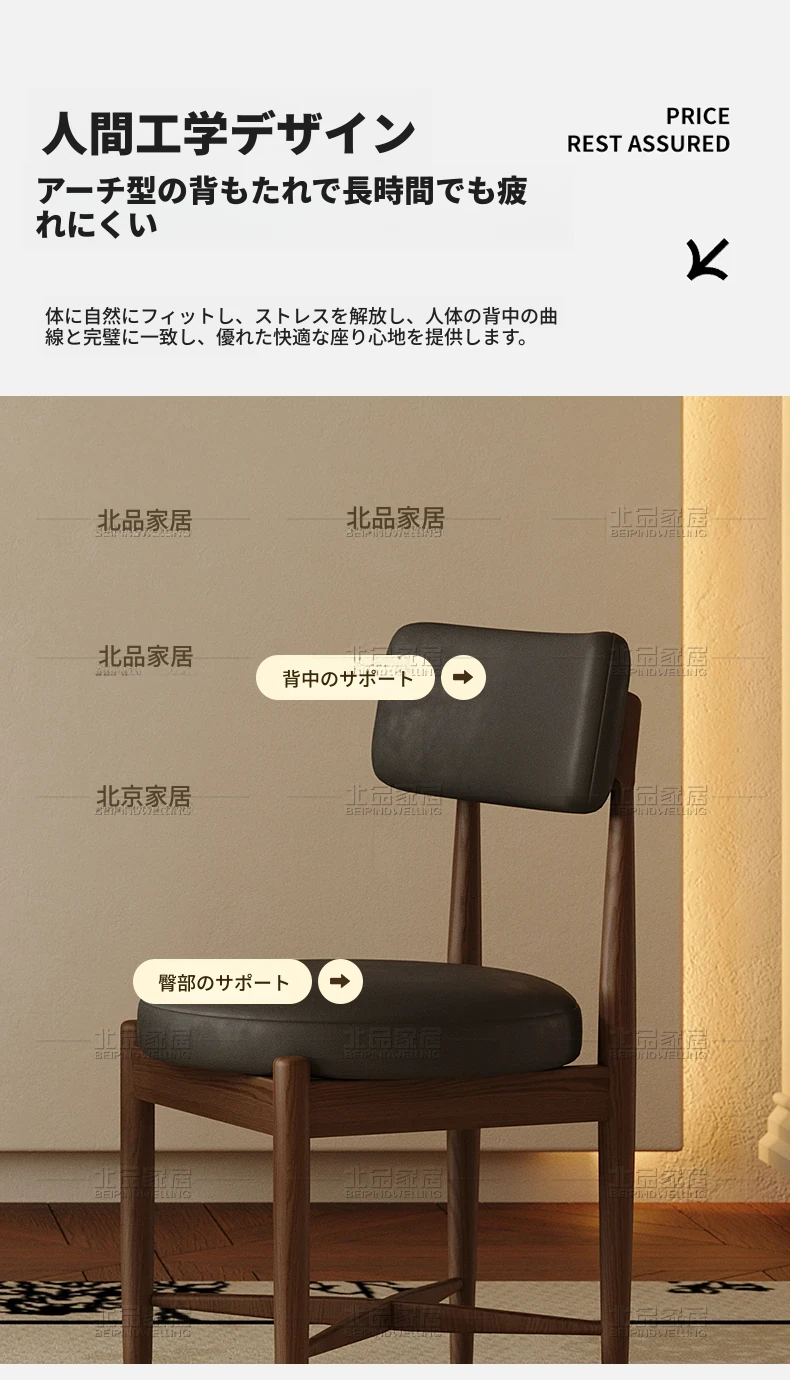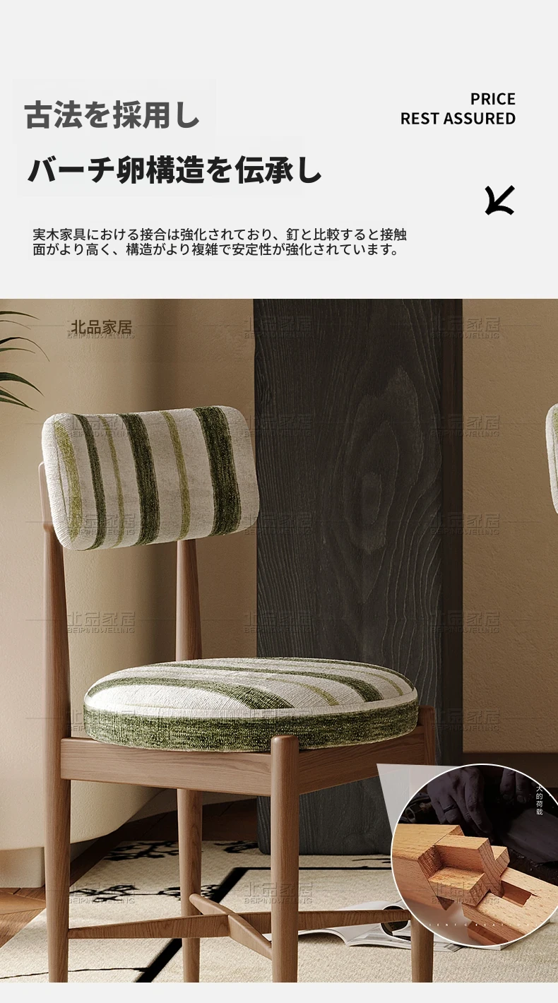 北欧デザインのホワイトアッシュ無垢材ダイニングチェア|シンプルで洗練された中古スタイル|上質な侘寂風ソフトバックレスト|家庭にぴったりの快適な座り心地!