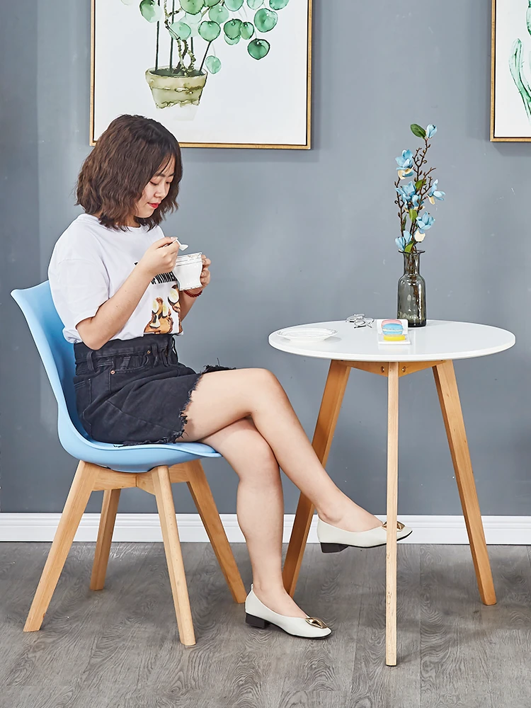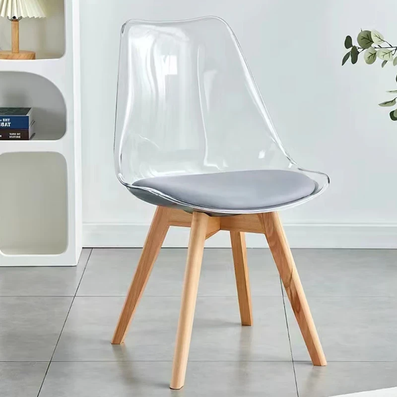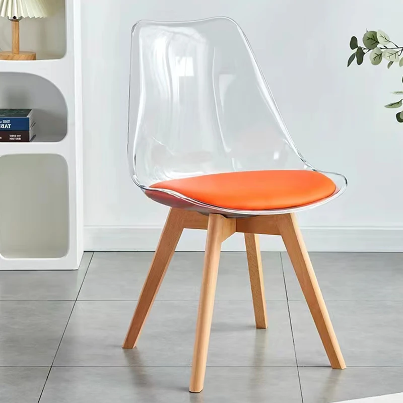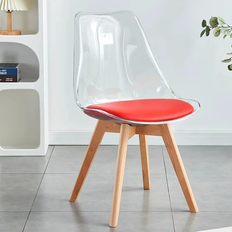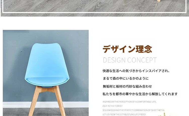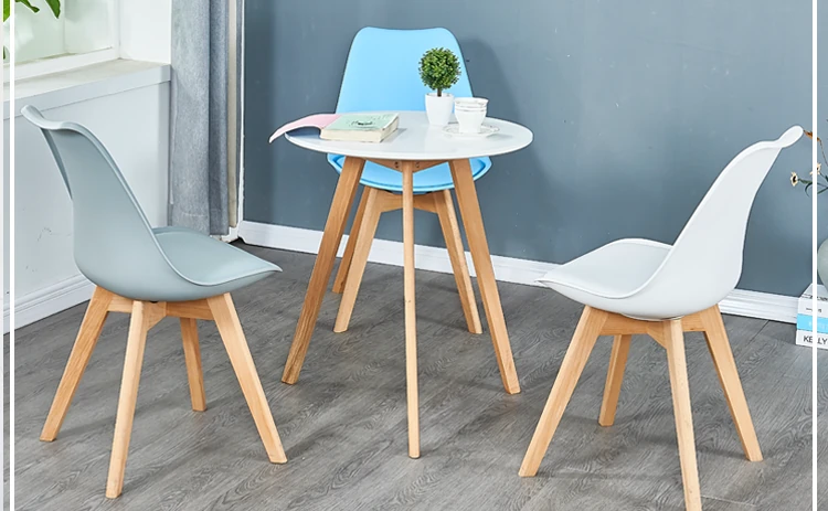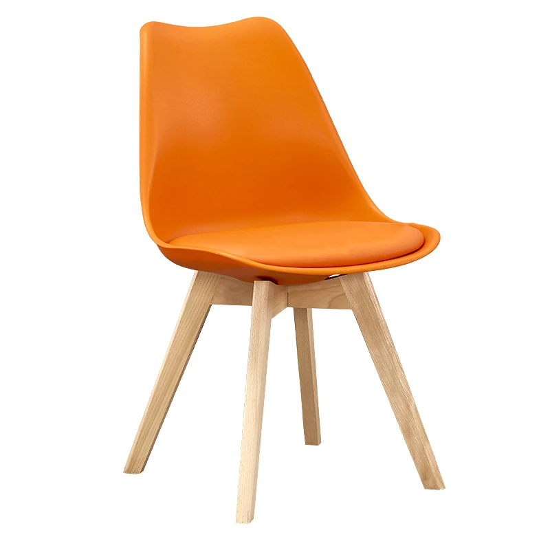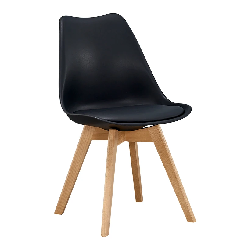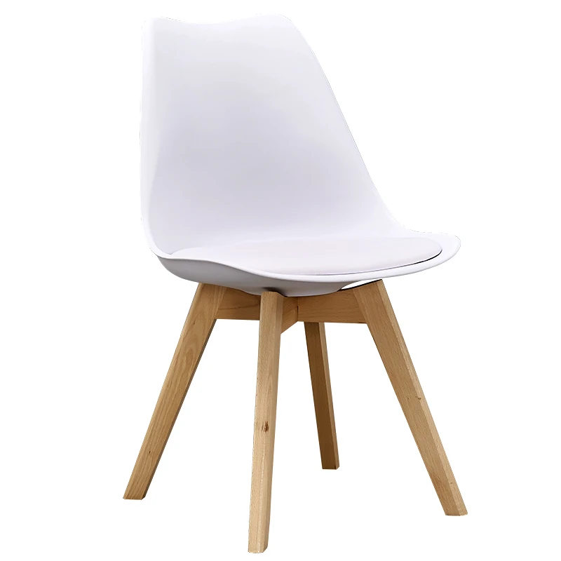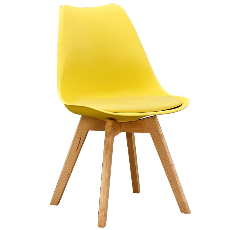 北欧風エームズスタイルの無垢材チューリップダイニングチェア - 現代的でシンプルなデザイン、快適な背もたれ付き、家庭用やオフィスの会議にも最適!おしゃれなインテリアを演出します。