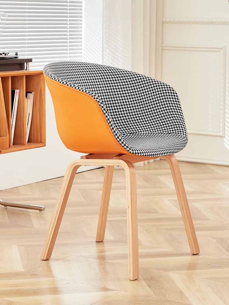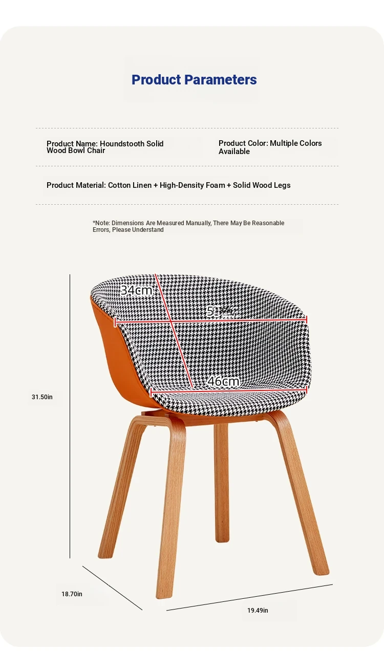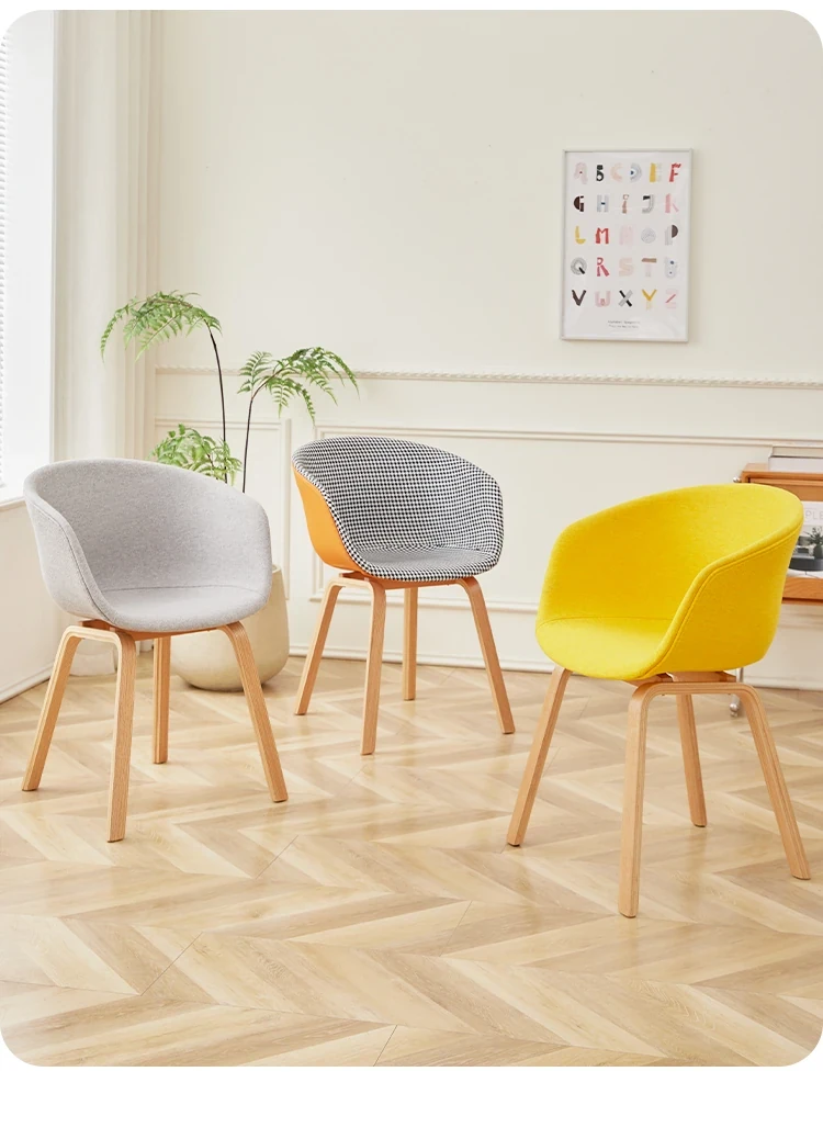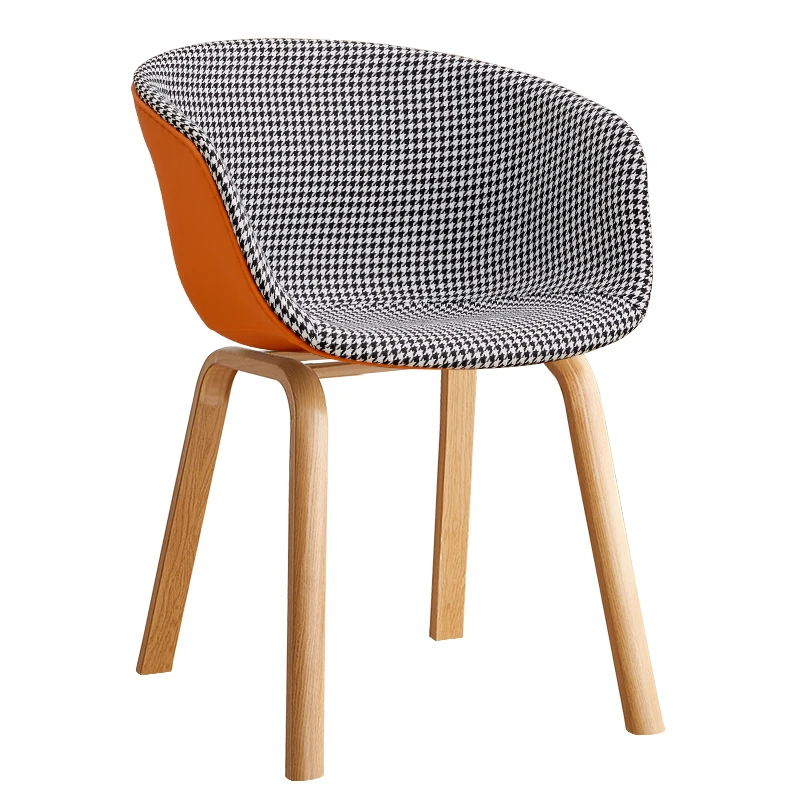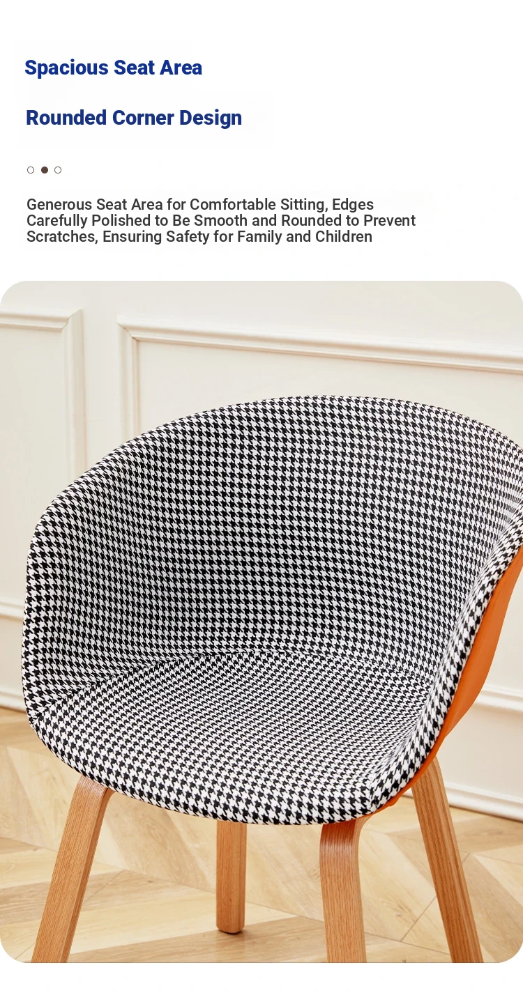 Nordic Houndstooth Solid Wood Dining Chair with Soft Cushion - Modern Minimalist Design for Comfortable Long Sitting in Office Meetings and Reception