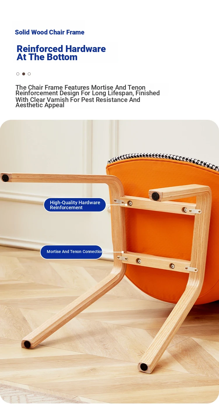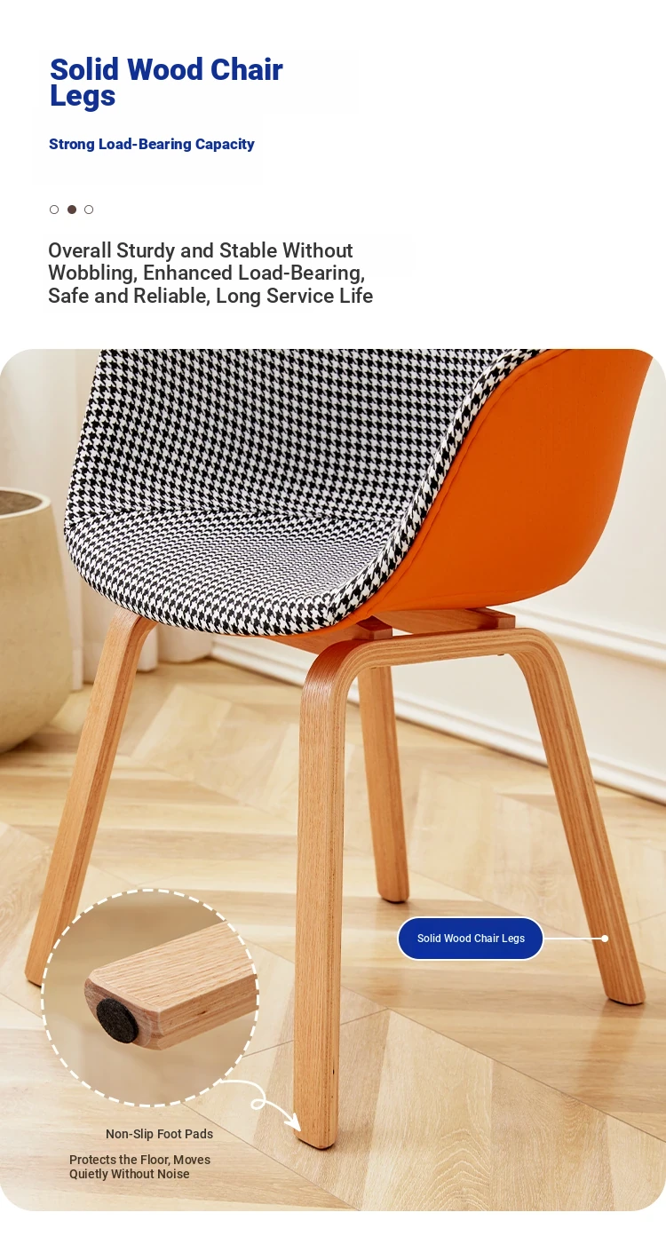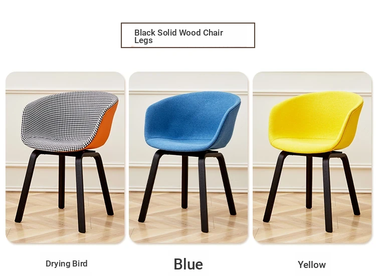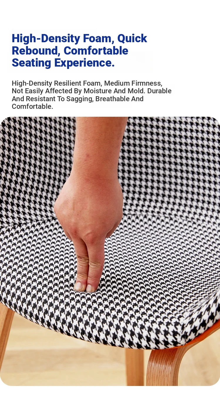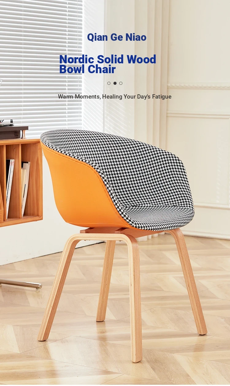 Nordic Houndstooth Solid Wood Dining Chair with Soft Cushion - Modern Minimalist Design for Comfortable Long Sitting in Office Meetings and Reception